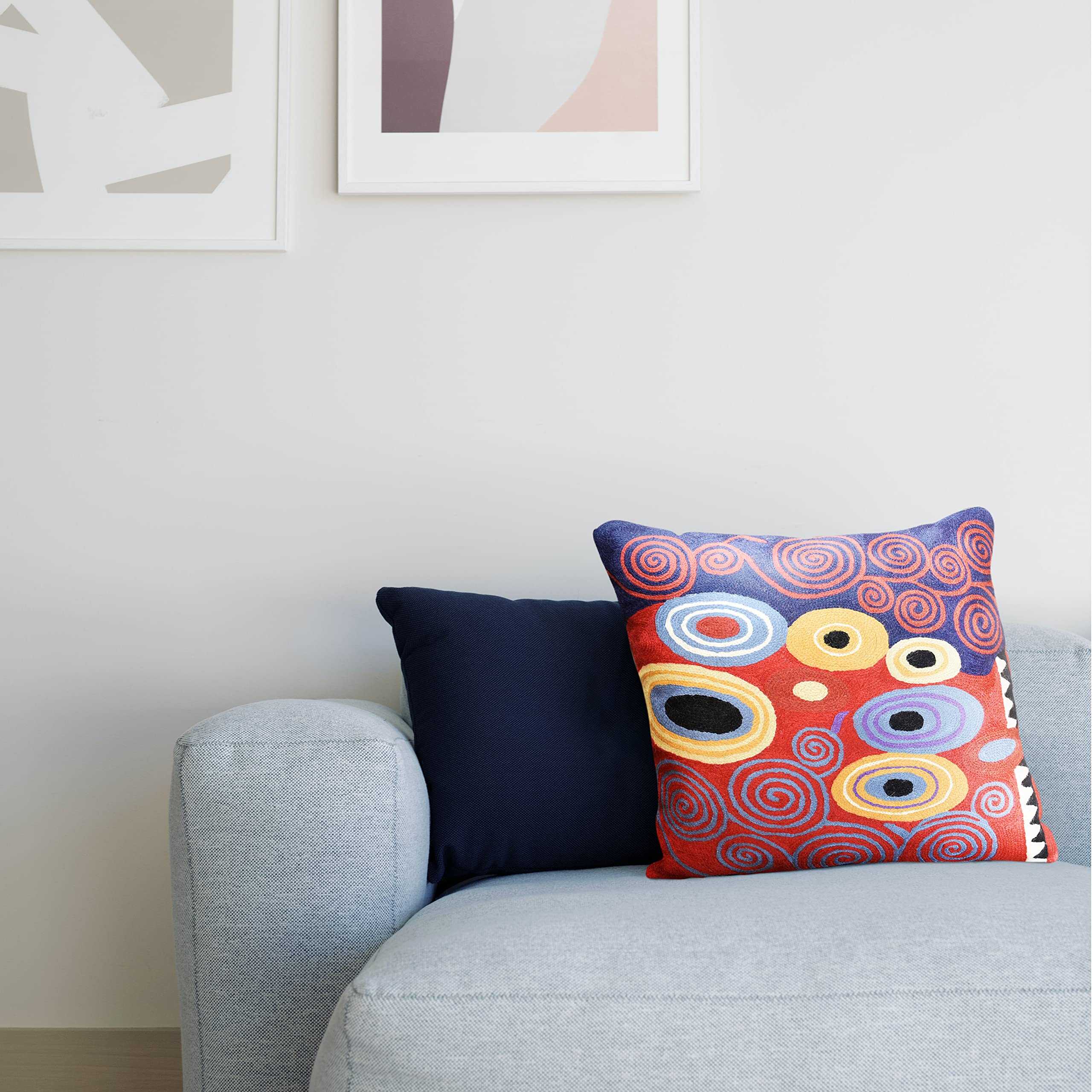 Fundas de Cojín Rojas Klimt Rojas y Azul Marino Modernas