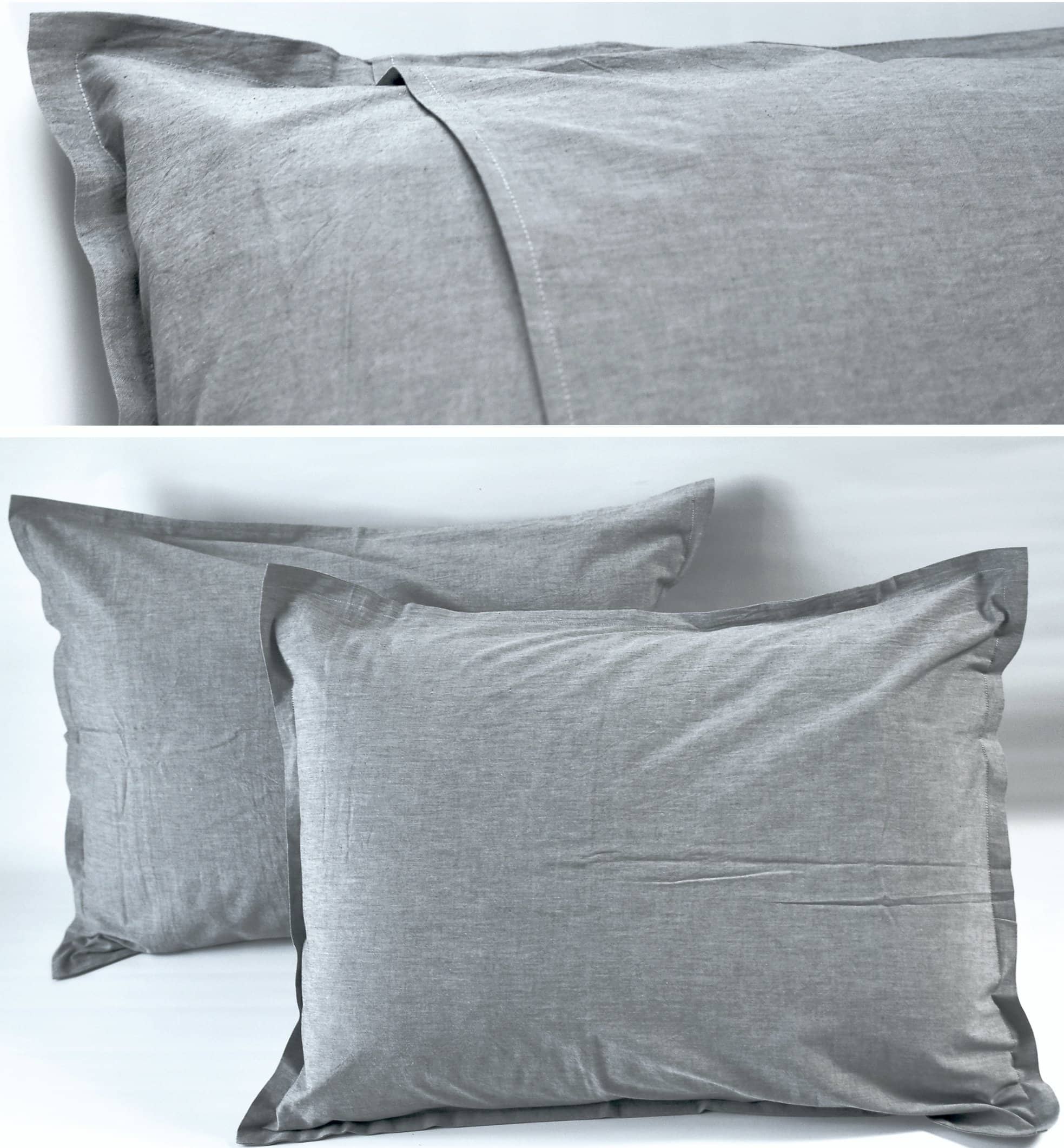 Juego de funda de edredón de chambray de algodón lavado estilo moderno y relajado de Eikei Home. Hecho de suave tela de algodón 100% lavado a la piedra en un atemporal azul marino polvoriento, gris claro/medio y lila. Los lazos ocultos antideslizantes en las esquinas mantendrán su edredón o colcha sin deslizarse dentro de la funda, cierre de botones para un acabado impecable. Fundas de almohada con volante y cierre de solapa francesa. Disponible en tamaño King y Full/Queen de EE. UU. Tejido de percal de color sólido resistente a la decoloración y a las arrugas con un aspecto naturalmente arrugado para la máxima comodidad en tu dormitorio. Viene con una práctica bolsa de almacenamiento.