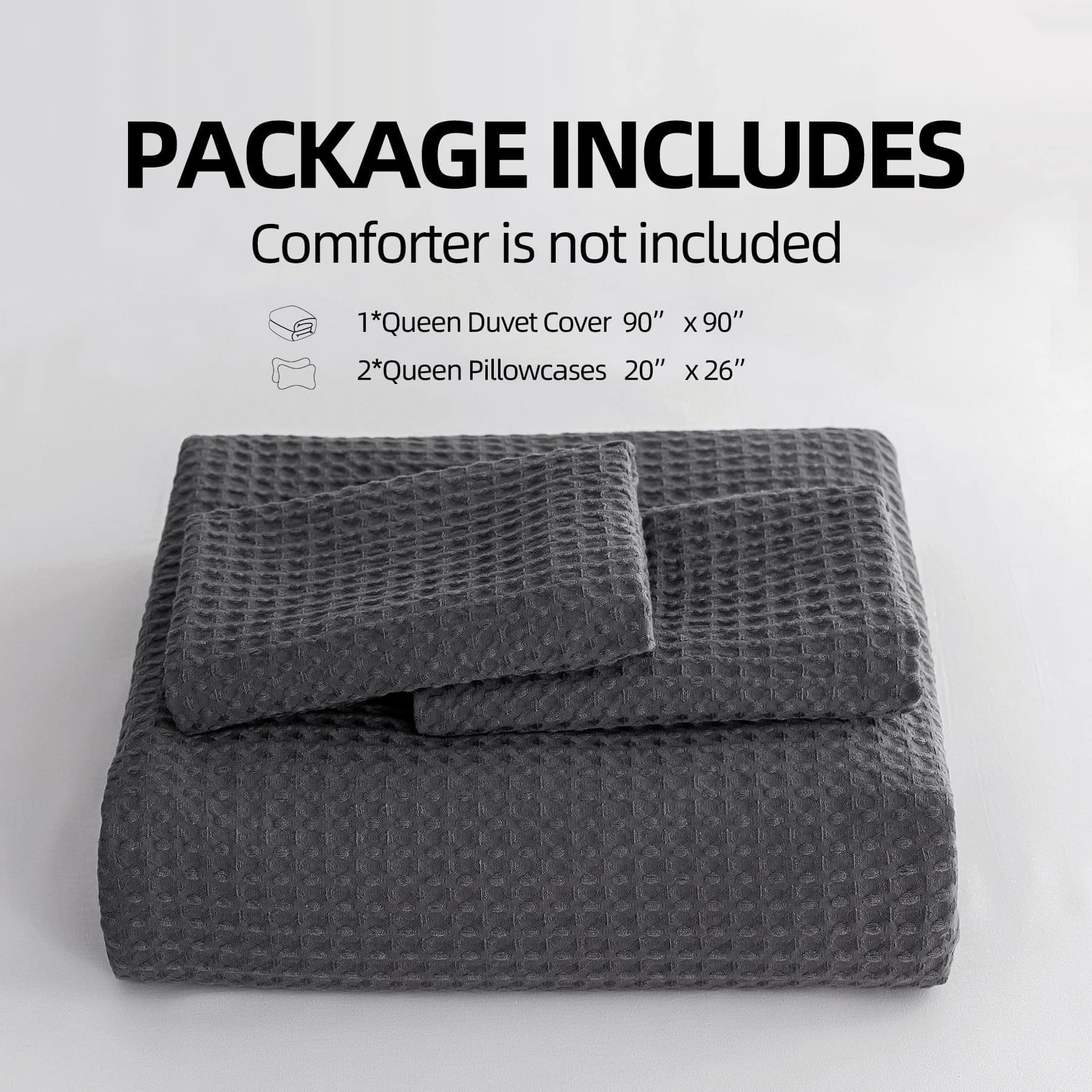 Jessrydo Waffle Duvet Cover Queen Size Soft Breathable Cooling Luxury 3 Pcs Waffle Bedding Set with 1 Waffle Weave Duvet Cover and 2 Pillowcases, NO Comforter Included (Queen, Gray)