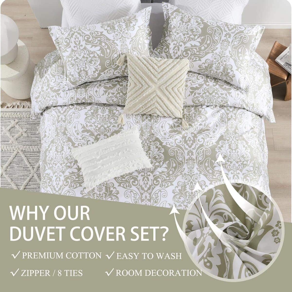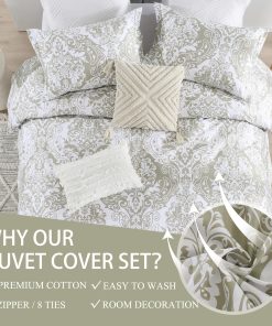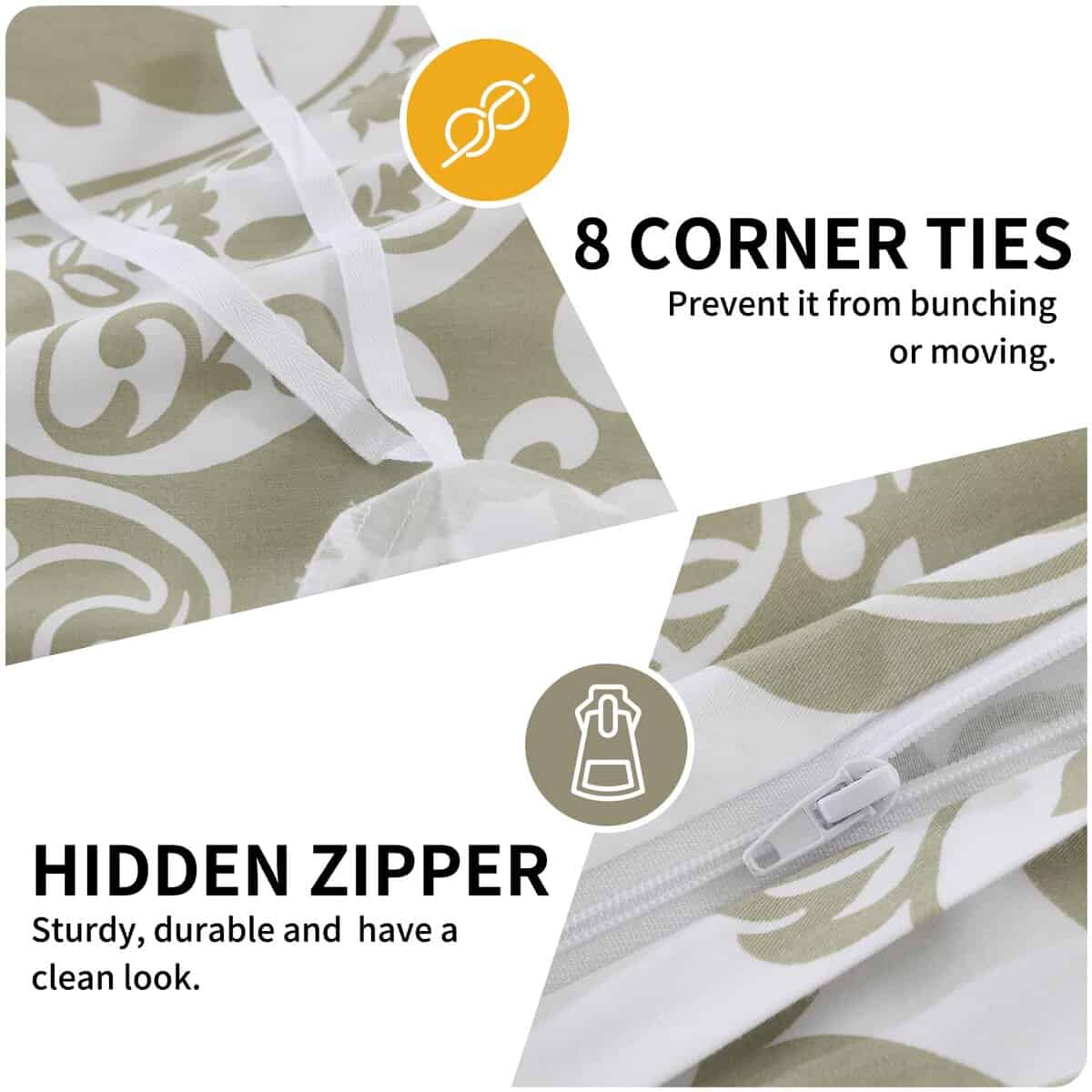 1. FÁCIL DE USAR – Funda de edredón de algodón 100% con cierre de cremallera y 8 lazos en las esquinas para mantener el edredón en su lugar.