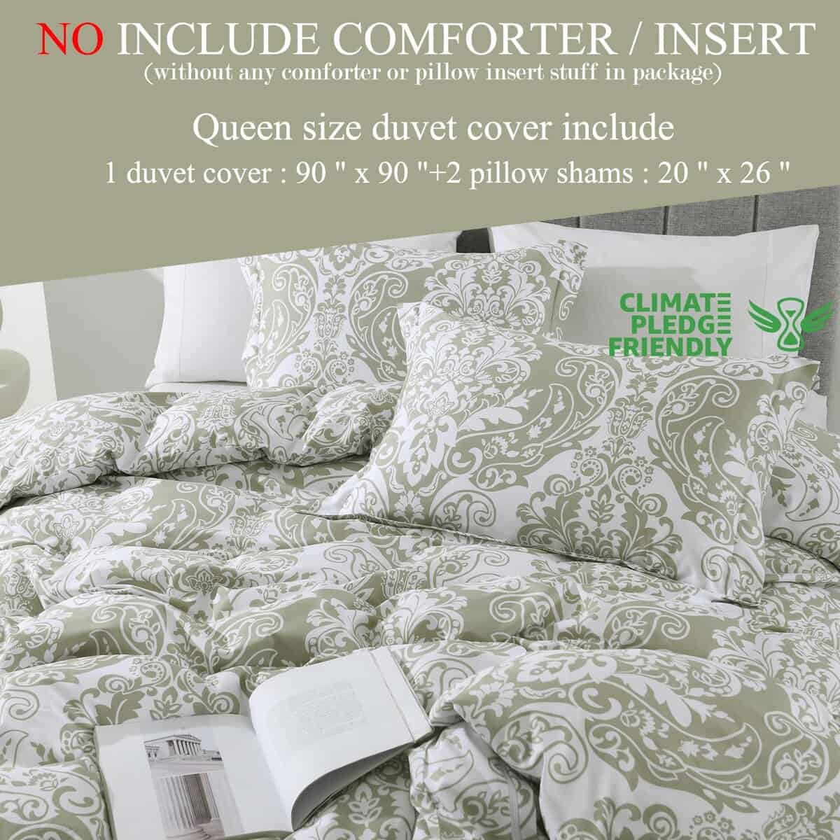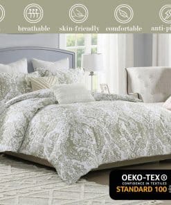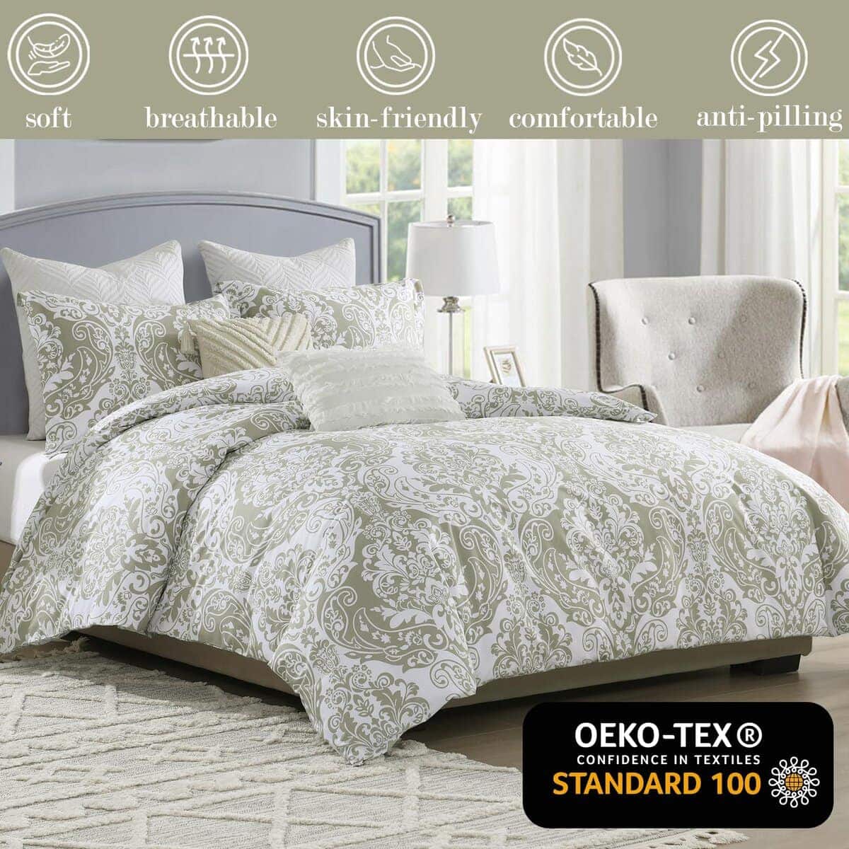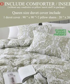Las fundas de edredón Quilta en tamaño queen están hechas de algodón 100% de alta densidad 400TC, que es suave, transpirable y cómodo para la piel. La funda de edredón es resistente a las arrugas, lavable a máquina y nunca se destiñe. El cierre de cremallera lateral invisible es más seguro y fácil de usar que los botones tradicionales. Los 8 lazos en las esquinas mantienen el edredón en su lugar. El diseño damasco es elegante y duradero, y con la certificación OEKO-TEX Standard 100, puedes estar seguro de la calidad de estos productos. Este juego incluye 1 funda de edredón queen size de 90″ x 90″ y 2 fundas de almohada de 20″ x 26″ (sin edredón). ¡Ideal para regalar en bodas, cumpleaños, Navidad y más!