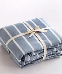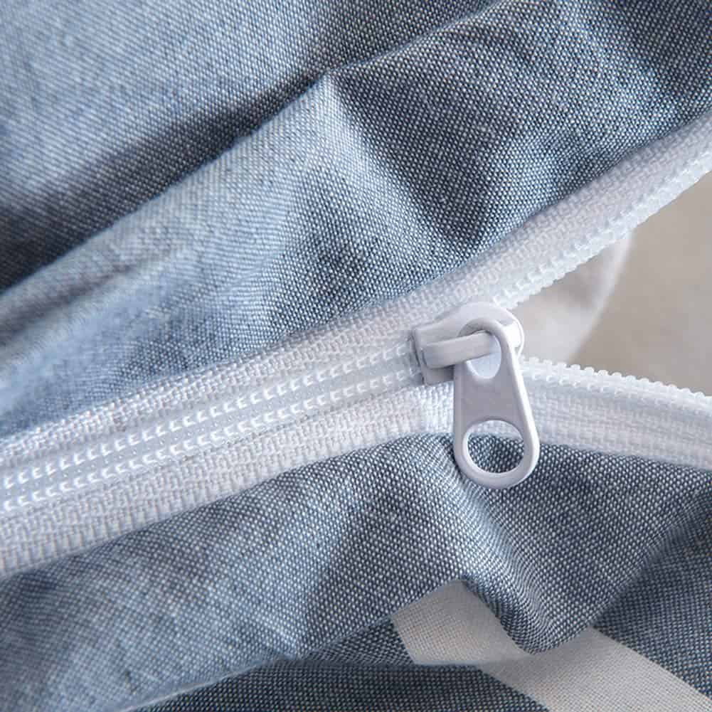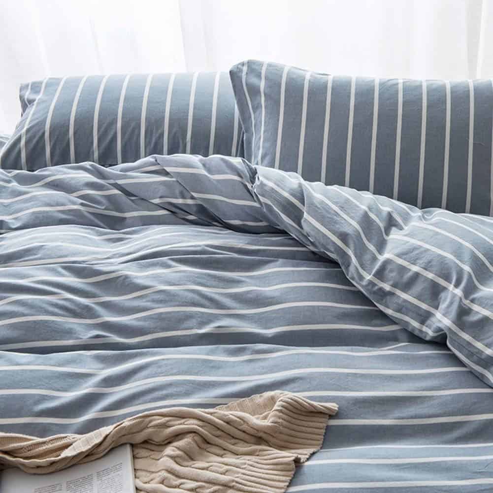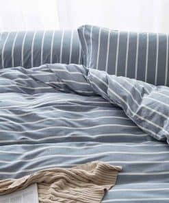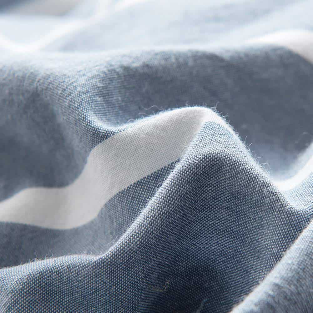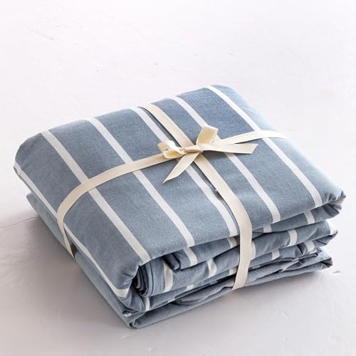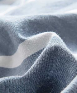 Este juego de funda de edredón tamaño king de DONEUS está hecho de 100% algodón lavado, lo que lo hace súper suave, cómodo y transpirable. La funda de edredón azul con diseño de rayas y textura arrugada ofrece un aspecto elegante y moderno para tu dormitorio. El juego incluye 1 funda de edredón de 104″ x 90″ y 2 fundas de almohada de 20″ x 36″. El cierre de cremallera oculto permite insertar fácilmente el edredón y los cuatro lazos en las esquinas mantienen el edredón en su lugar. La funda de edredón se puede limpiar fácilmente y es resistente al desgaste. ¡Compra con confianza y disfruta de una noche de sueño cómoda y placentera con esta funda de edredón de alta calidad!