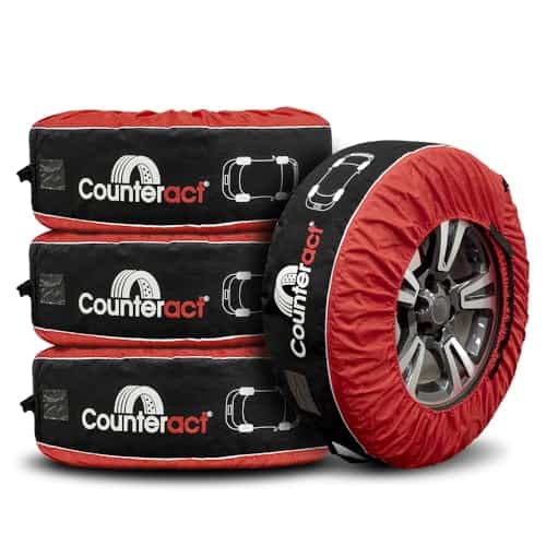 1. MANTIENE LOS NEUMÁTICOS LIMPIOS Y ORGANIZADOS: Las fundas para neumáticos cubren tus neumáticos y mantienen tu garaje organizado cuando los neumáticos no están en uso; protege tu ropa e interior del auto del sucio durante el transporte. 2. PROTEGE Y ALMACENA NEUMÁTICOS DURANTE LA TEMPORADA FUERA DE USO: La construcción resistente de estas Counteract Wheel Totes protege los neumáticos de los elementos; es la cubierta de neumáticos perfecta para la temporada o como cubierta de repuesto. 3. ASA PARA UN TRANSPORTE FÁCIL: La funda para neumáticos reduce el desorden y la molestia del cambio de neumáticos de temporada, el asa facilita levantar y llevar los neumáticos. 4. JUEGO DE 4 BOLSAS PARA NEUMÁTICOS INCLUIDAS: Se incluyen cuatro Counteract Wheel Totes; se recomienda combinarlas con los Counteract Wheel Felts (se venden por separado) para proteger las llantas de rasguños y golpes para un almacenamiento óptimo de los neumáticos. Cada funda incluye una tarjeta de ventana. 5. Ajuste Universal – Las Wheel Totes se ajustan a neumáticos de 21″ a 31″ de diámetro (esto representa el 90% de los neumáticos de vehículos de pasajeros)
