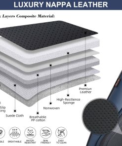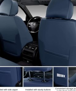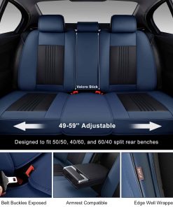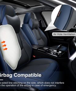 Las fundas para asientos de coche BWTJF están diseñadas para proporcionar la máxima comodidad y protección a sus asientos de coche. Hechas de cuero Nappa compuesto de alta calidad, estas fundas son duraderas y resistentes al desgaste, ofreciendo protección completa para sus asientos originales. El tratamiento lumbar más grueso está diseñado ergonómicamente para proporcionar un mejor soporte lumbar durante largos viajes en coche. Cada funda del asiento delantero viene con un cojín extra para la cabeza, que apoyará su cuello mientras el coche se mueve hacia adelante y ayudará a liberar el estrés y el cansancio durante la conducción. El diseño único de botón superior y cremallera lateral facilita el ajuste y la instalación rápida de las fundas. Los asientos delanteros tienen bolsas de almacenamiento en los lados delantero y trasero, proporcionando espacio adicional para guardar objetos personales. Además, las fundas son compatibles con bolsas de aire y cinturones de seguridad, manteniendo la funcionalidad de los asientos intacta. Los puntos de silicona antideslizantes en la parte trasera de las fundas mantienen el cojín en su lugar al entrar y salir del coche. Cada paquete viene con un juego completo de fundas para asientos de coche, incluyendo fundas para asientos delanteros y traseros, un juego de hardware de ganchos y trabas, y un manual de instalación detallado. Las fundas están diseñadas para adaptarse a bancos traseros divididos en 50/50, 40/60 y 60/40, proporcionando una cobertura completa para la mayoría de los vehículos, incluyendo sedanes, camionetas, furgonetas y SUVs. Antes de la compra, por favor confirme que el ancho de los asientos traseros es inferior a 56 pulgadas para garantizar un ajuste perfecto. Si tiene alguna pregunta sobre la compatibilidad de las fundas con su vehículo, no dude en ponerse en contacto con nuestro equipo de servicio al cliente para recibir asistencia personalizada