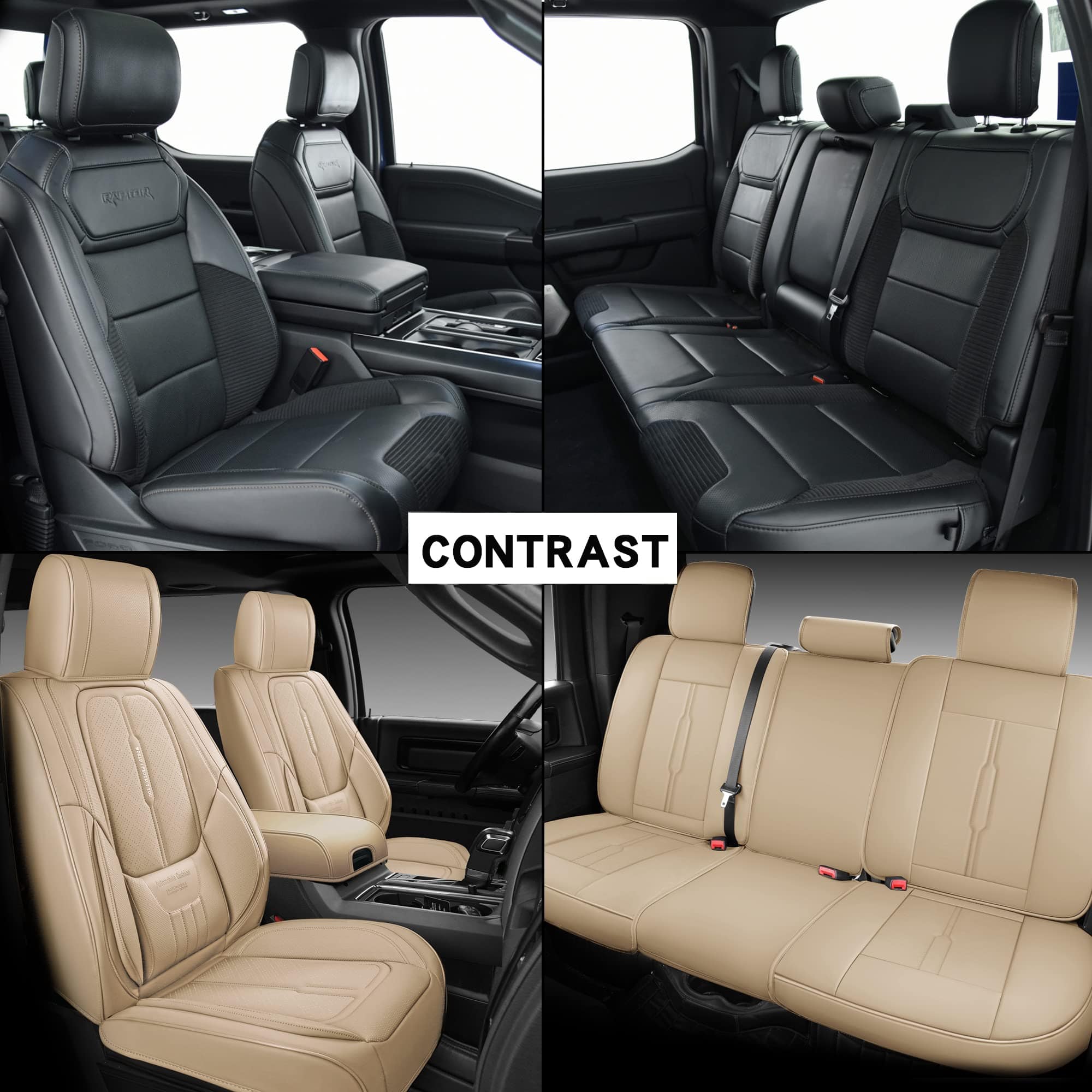 1. Ajuste perfecto: Esta funda de asiento personalizada está diseñada exclusivamente para Ford F150 F250 F350 F450 de 2007-2023. Se ajusta perfectamente a las versiones mencionadas, lo cual marca una gran diferencia entre una funda universal y una personalizada. Está totalmente envuelta como se puede apreciar en las imágenes.