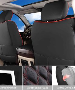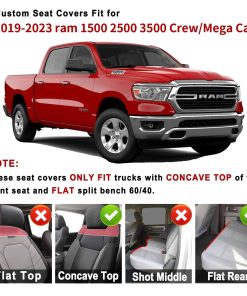 Fundas para asientos Ram 1500 hechas de cuero sintético de alta calidad, acolchadas con esponja, tejido no tejido, algodón PP y tela de gamuza, son impermeables y resistentes al desgaste, se sienten más suaves y cómodos. La cubierta de asiento de cuero de cobertura completa puede proteger el asiento original del polvo, la suciedad, los pelos de mascotas y los arañazos. Diseño de cobertura completa, ninguna parte expuesta, más transpirable y elegante, agregando un toque moderno a la tapicería de su automóvil. Los asientos traseros diseñados divididos 60/40, son compatibles con asientos de bebé, portavasos y hebillas de asiento. Las fundas del asiento delantero tienen una abertura reservada para que salgan las bolsas de aire en caso de emergencia. Estas fundas de asiento de cobertura total no afectarán las funciones originales de su camioneta. Con correas flexibles, ganchos de plástico y gancho, las cubiertas de cojín de asiento de camión se pueden instalar rápida y fácilmente. El juego de fundas de asiento completo incluye 2 piezas de cubiertas de respaldo del asiento delantero, 2 piezas de cubiertas inferiores delanteras, 1 pieza de cubierta de consola central, 1 pieza de cubierta de respaldo trasero, 1 pieza de cubierta inferior trasera 60%, 1 pieza de cubierta inferior trasera 40% y 4 piezas de cubiertas para reposacabezas. Tenga en cuenta que la cubierta del respaldo trasero es una pieza completa. Estas fundas de asiento Dodge Ram se pueden limpiar fácilmente pasando un paño húmedo. Por favor, lea el manual de instalación adjunto o vea el video de instalación antes de instalar. Respaldamos nuestros productos. Cualquier pregunta, haremos todo lo posible para resolver su problema.