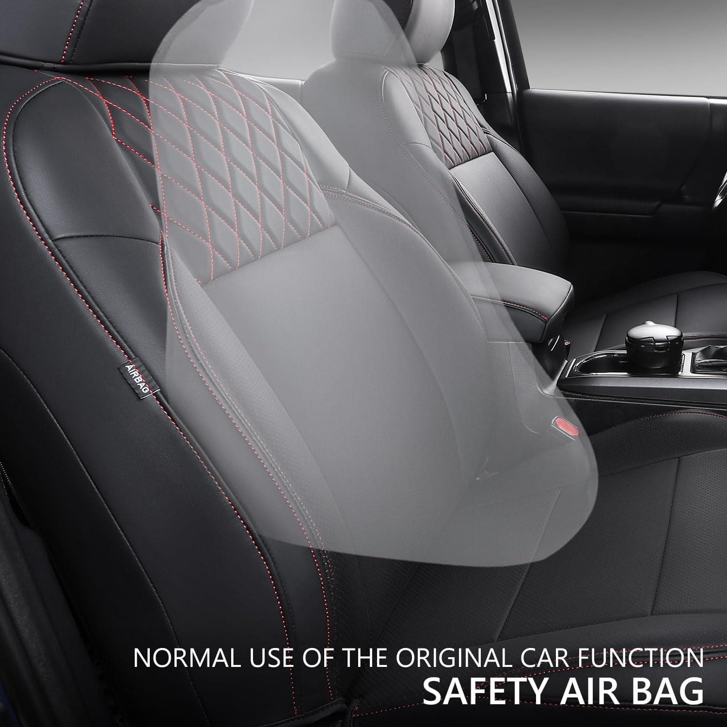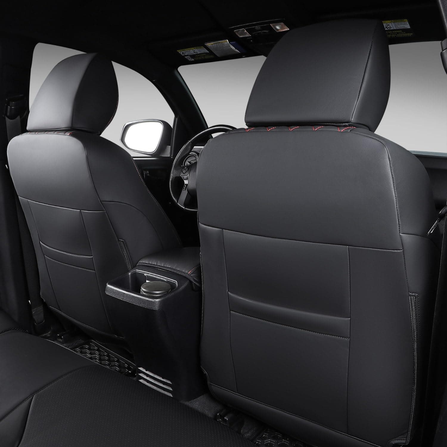 3. Función: Nuestras fundas son compatibles con Tacoma 2016-2023 están bien diseñadas y no afectan el uso de los cinturones de seguridad y el reposabrazos trasero. Las fundas de los asientos pueden proteger los asientos originales de manchas y daños. El artículo puede hacer que el interior del automóvil se vea elegante.