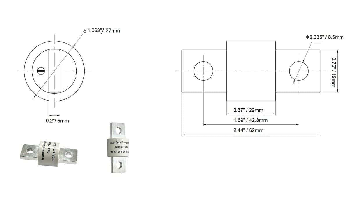 Fusible de Clase T de Rápida Explosión de 175A de South Bend Components es un repuesto OEM original que se puede utilizar en una variedad de aplicaciones, como automotriz, de RV, marinas o solares. Este fusible está certificado por UL 248-1, UL 248-15 y UL 1500, lo que garantiza su calidad y seguridad. Con una clasificación de 175 Amperios DC, este fusible es adecuado para su uso en una amplia gama de dispositivos electrónicos. Utilizado como material OEM en RVs de Thor y Forest River, este fusible es confiable y duradero para satisfacer sus necesidades de protección eléctrica.