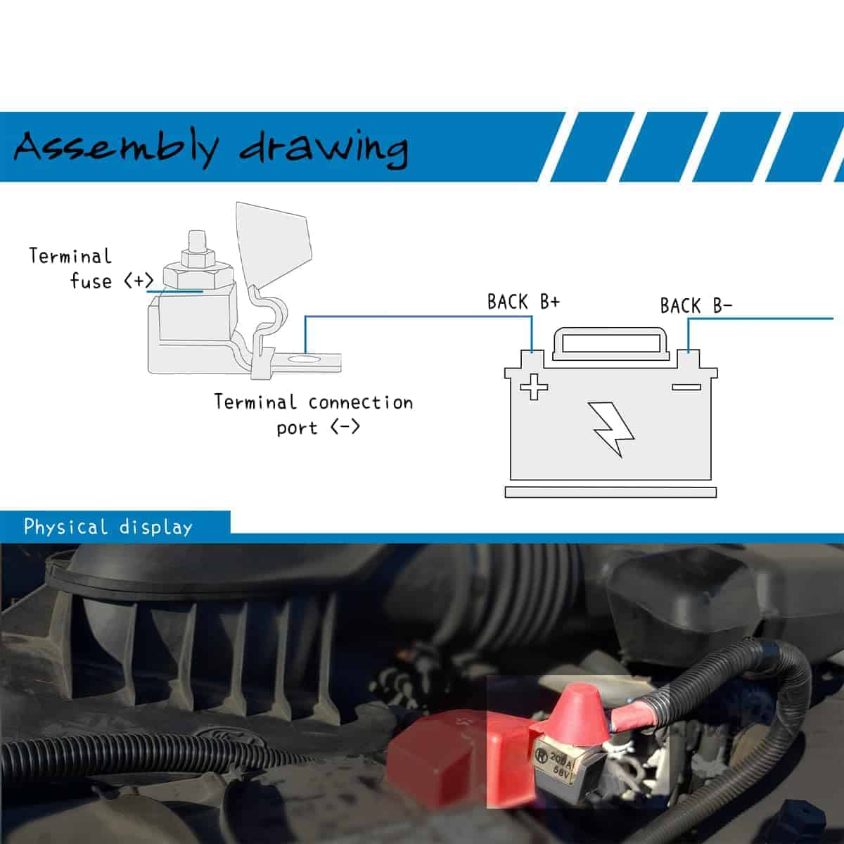 5. Fácil de Instalar: La construcción simple del bloque de fusibles de terminal de batería facilita mucho la instalación del dispositivo en la batería a través de la conexión segura del portafusible.