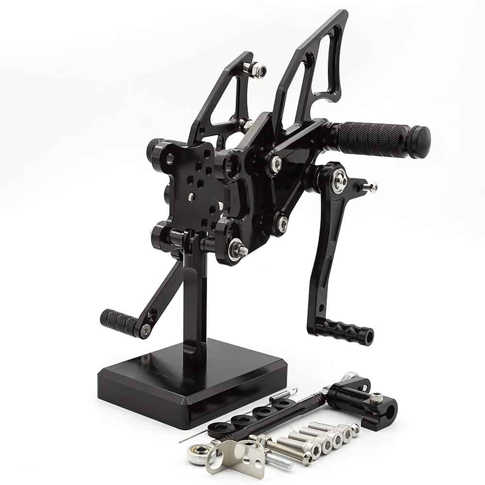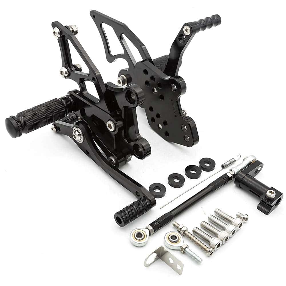 Ajuste para YZF R25/R3 2014-2018, MT-25 MT-03 2015-2018. Material: Aluminio T6061-T6 (alta calidad, ligero y duradero). Acabado: CNC y Anodizado (duradero y resistente al desgaste). Paquete: 1 par (Perno de freno trasero + Perno de cambio trasero + Cambio estándar). Peso: 3.3 LB. No se necesita modificación, instrucciones de instalación no incluidas. Otras Piezas Disponibles: Palancas de freno y embrague, Protectores de caída, Bloqueos de espejos, Asas de pasajero, entre otros productos disponibles.