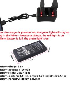 Fytoo Nuevos Productos para Repuestos de Avión de Cuatro Ejes TELLO Drone 2PCS Batería de Litio de 3.8V 1100mah con Cargador 3 en 1 Negro