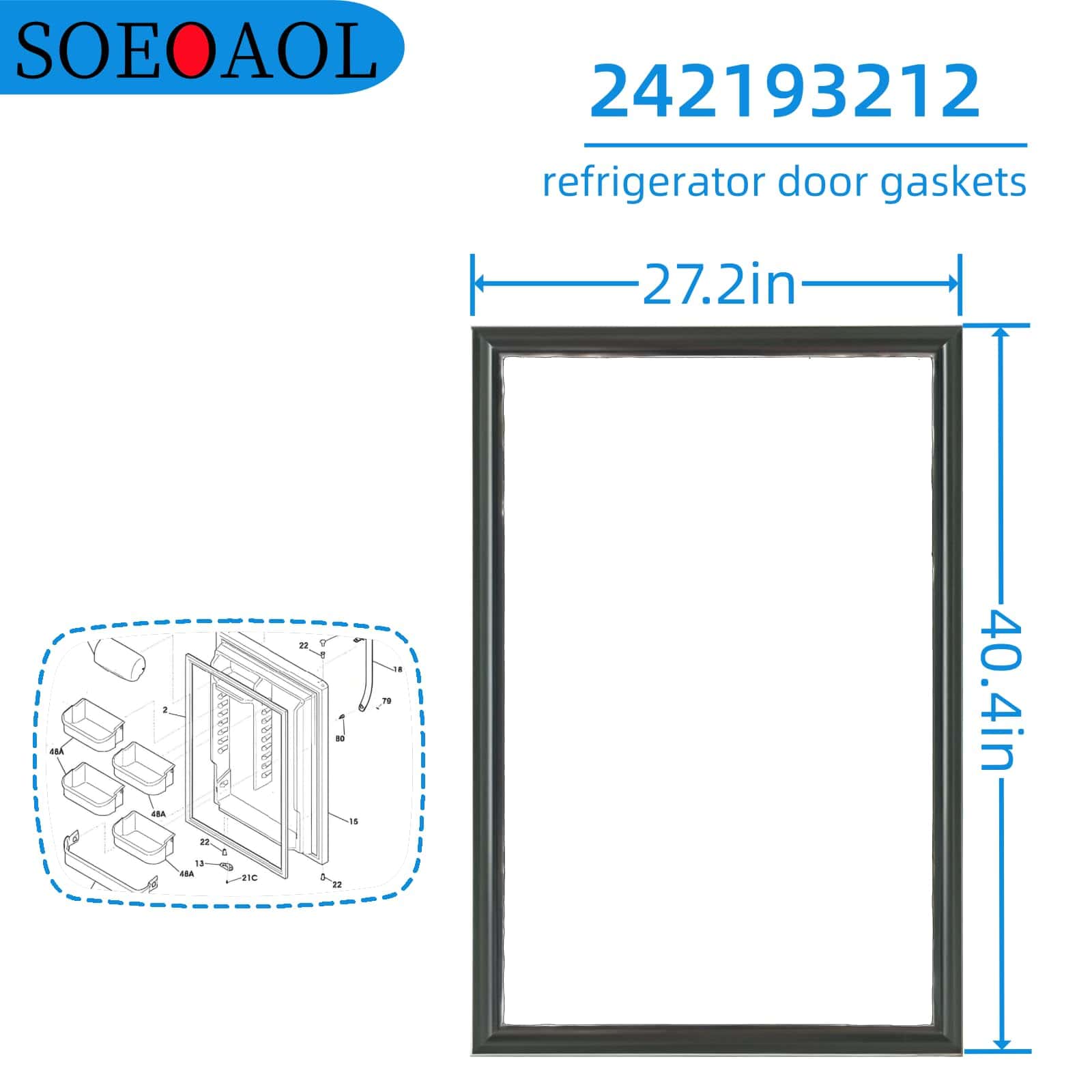 Gabinete de puerta de refrigerador 242193212 mejorado, compatible con el reemplazo de sello de puerta de refrigerador Kenmore Frigidaire Crosley Westinghouse, reemplazo para AP5806924, 3513466. ¡Con garantía de 2 años! Nuestros sellos de puerta solo han sido mejorados en materiales. El número de pieza 242193212 reemplaza a AP5806924, 3513466, PS9493822. La compatibilidad de tamaño y modelo es exactamente la misma. Reemplace el sello de la puerta entre la puerta del congelador y el gabinete para garantizar un aislamiento y control de temperatura adecuados. Reemplazar el sello de la puerta puede solucionar los siguientes problemas de refrigerador: mal sellado, alto consumo de energía, fluctuaciones de temperatura y formación de hielo interno. ¡Más modelos compatibles en la descripción corta!