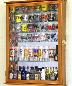 La forma perfecta de exhibir tus memorables vasos de chupito que has coleccionado de todos los lugares que has visitado. Viene con un fondo de espejo y 7 estantes de vidrio extraíbles y ajustables, ¡un total de 8 estantes de exhibición! Soportes de pared instalados para colgar o para estar de pie. Este estuche puede mostrar hasta un total de 64 vasos de chupito de tamaño estándar o con 4 de los estantes de vidrio retirados, el estuche se puede usar para mostrar 32 vasos más altos de chupito. Gran estuche para exhibir tus vasos de chupito, latas de refrescos, botellas de cerveza, mini botellas de licor u otras colecciones.
