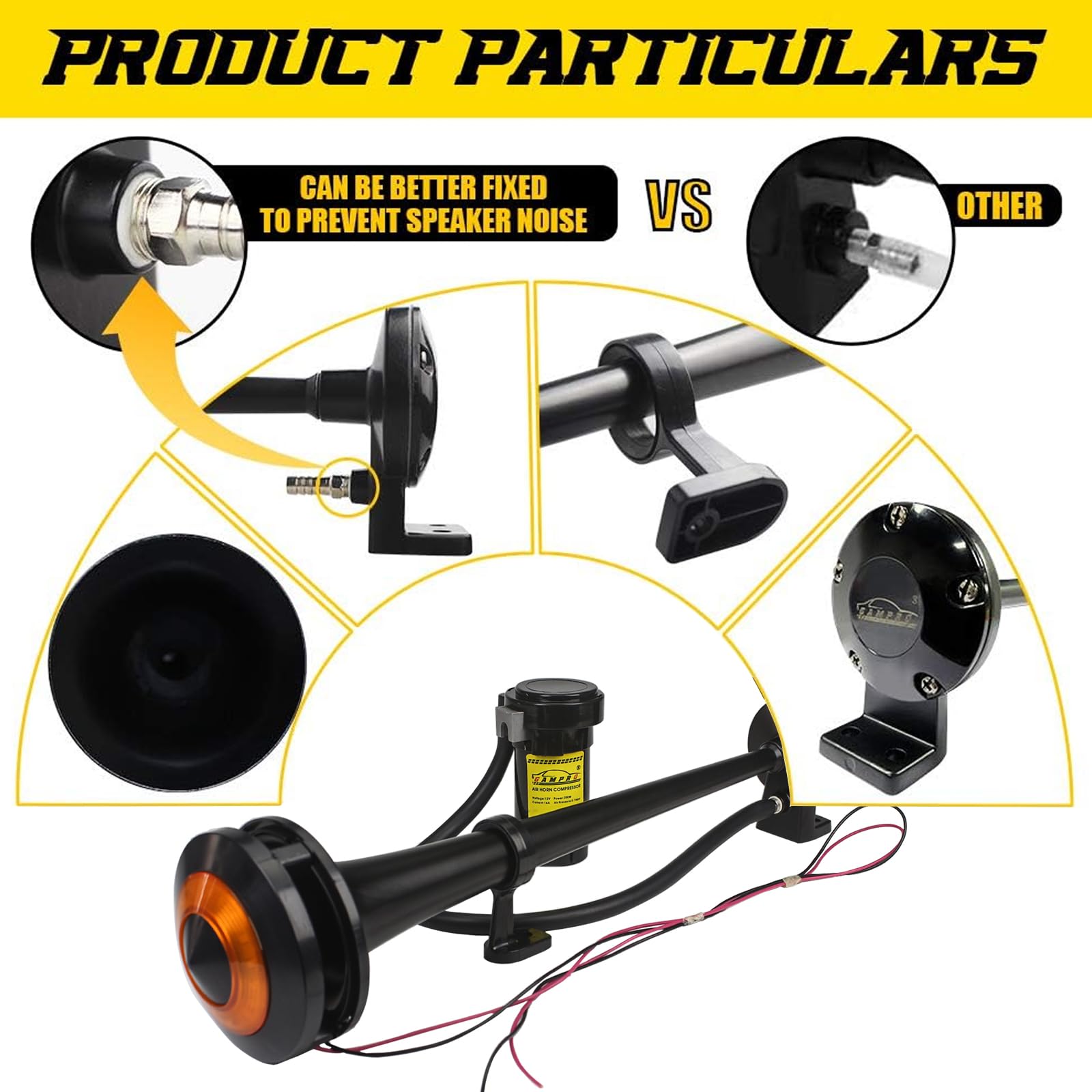 GAMPRO 12V 150DB Car Air Horns, 18 Pulgadas Trompeta Única