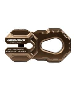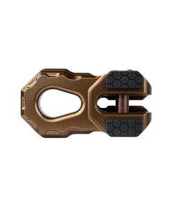 Accesorio de winche de servicio en campo fabricado en aluminio mecanizado CNC 6061 certificado por EE. UU. con un pasador endurecido de acero inoxidable 17-4. Diseño ligero con un límite de carga de trabajo de 19,000 lbs capaz de operaciones de recuperación estándar en situaciones fuera de la carretera. Permanece luciendo genial gracias al recubrimiento resistente a los rayos UV y a la abrasión. No exceda el límite de carga de trabajo más bajo (LCT) de ningún componente (por ejemplo: vehículo, receptor de enganche, gancho, etc.) – Acabado: Recubrimiento de polvo de bronce – Parte BWS-BRZ Hecho en EE. UU. – .