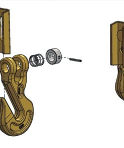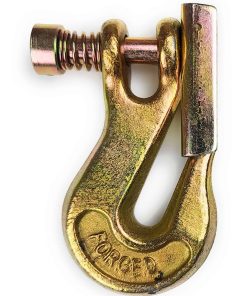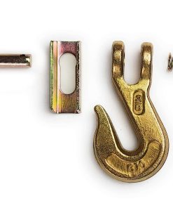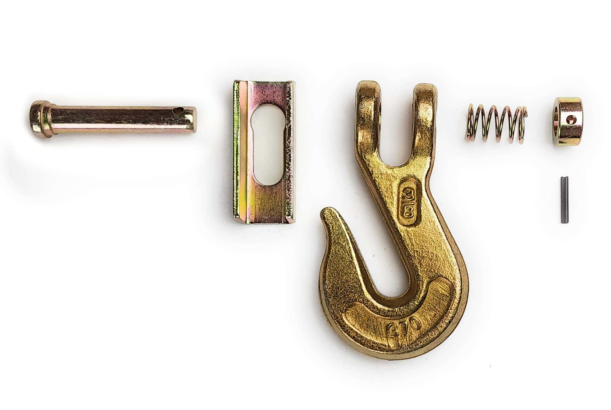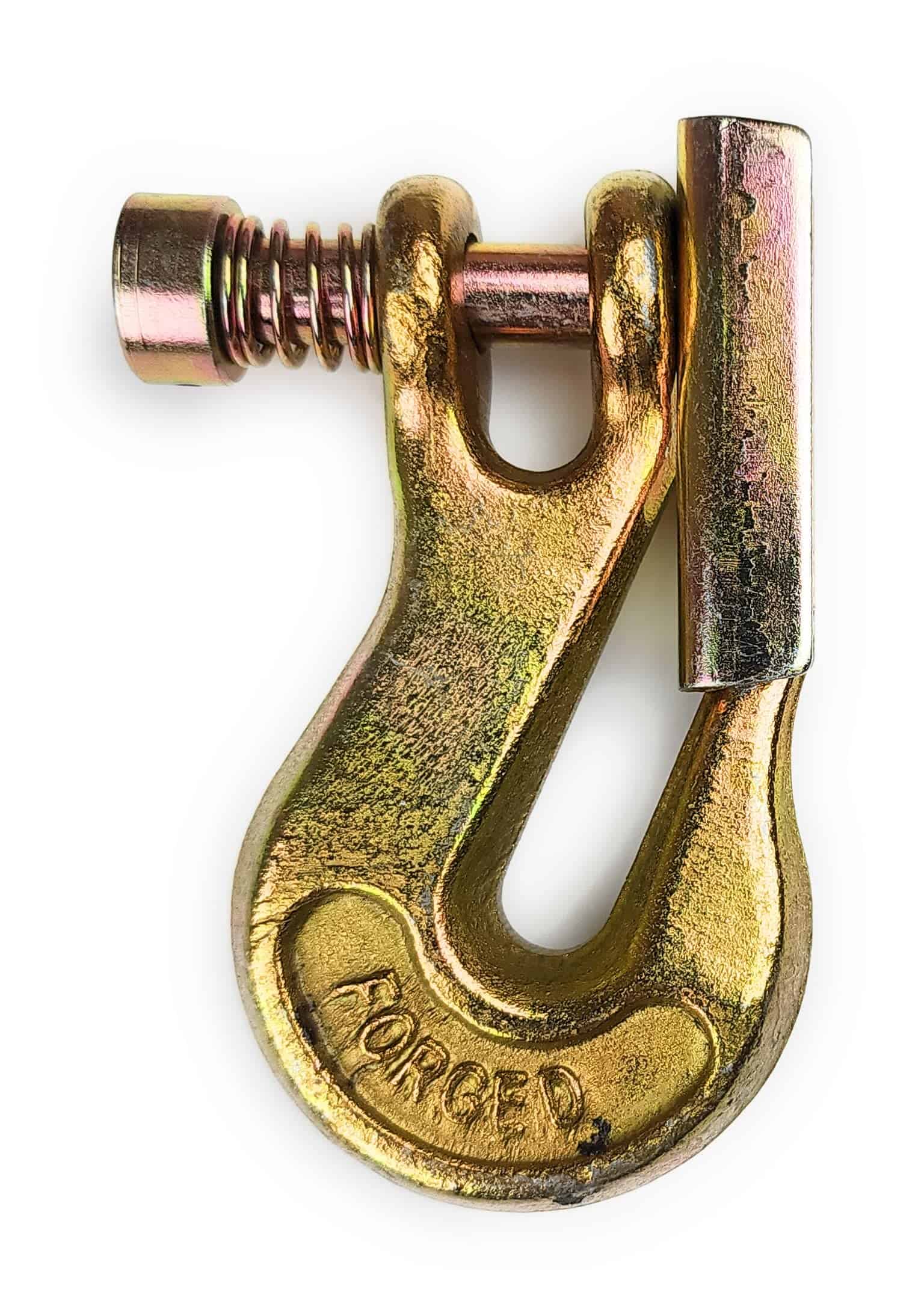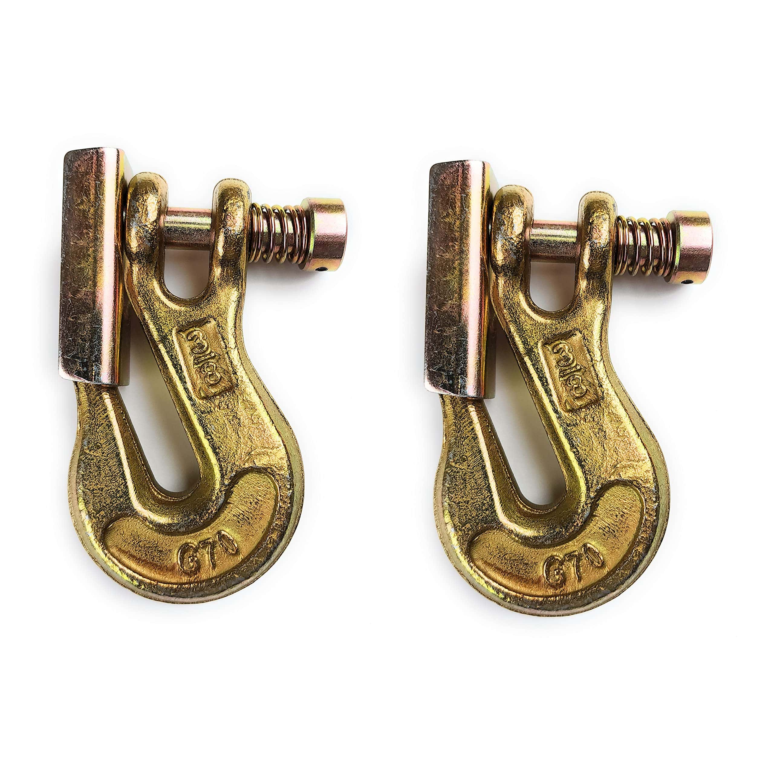 2 piezas de Gancho de retención de cubo de chip de 3/8 pulgadas de grado 70 con cierre de pasador, para remolque de cabrestante, troncos, acabado amarillo zinc cromatado