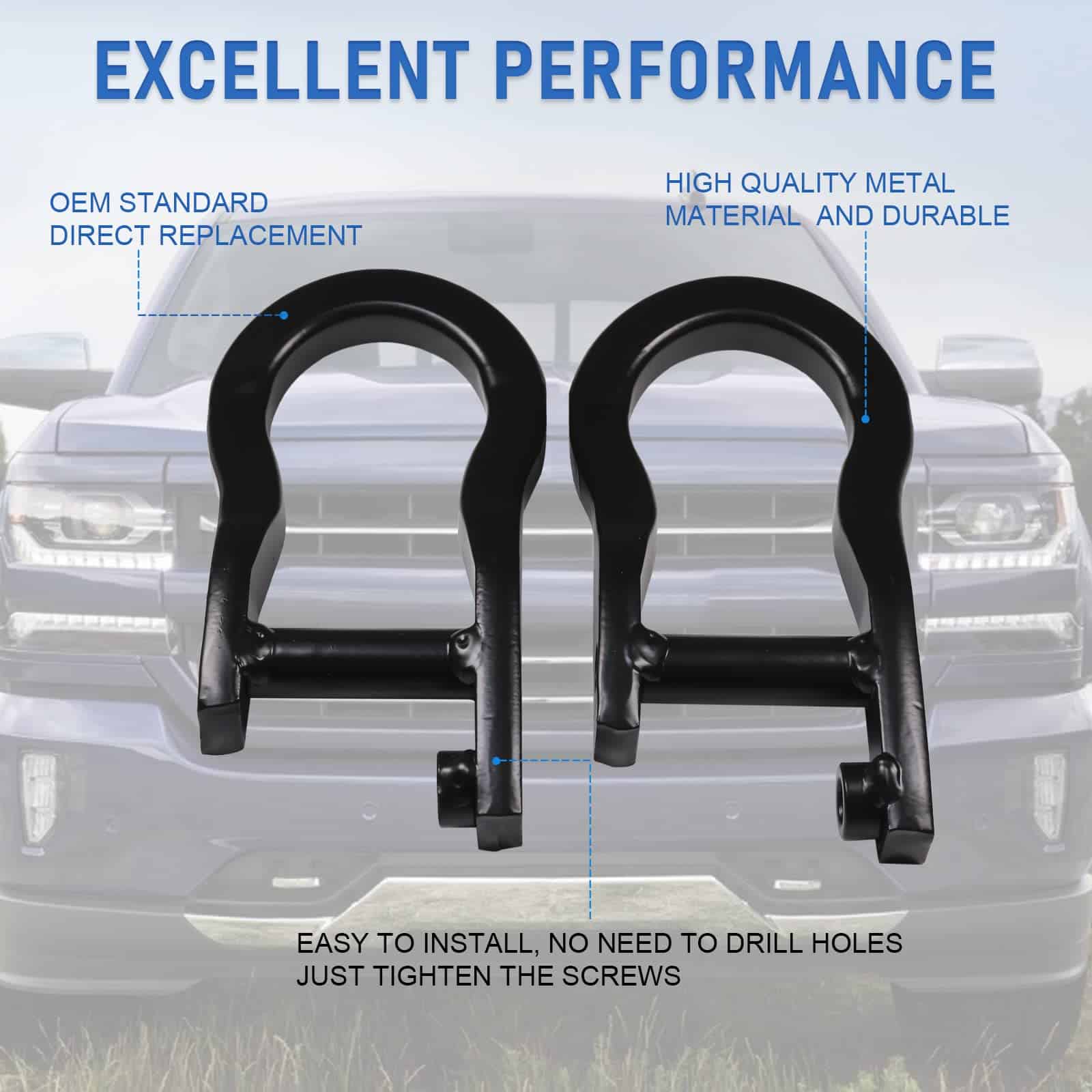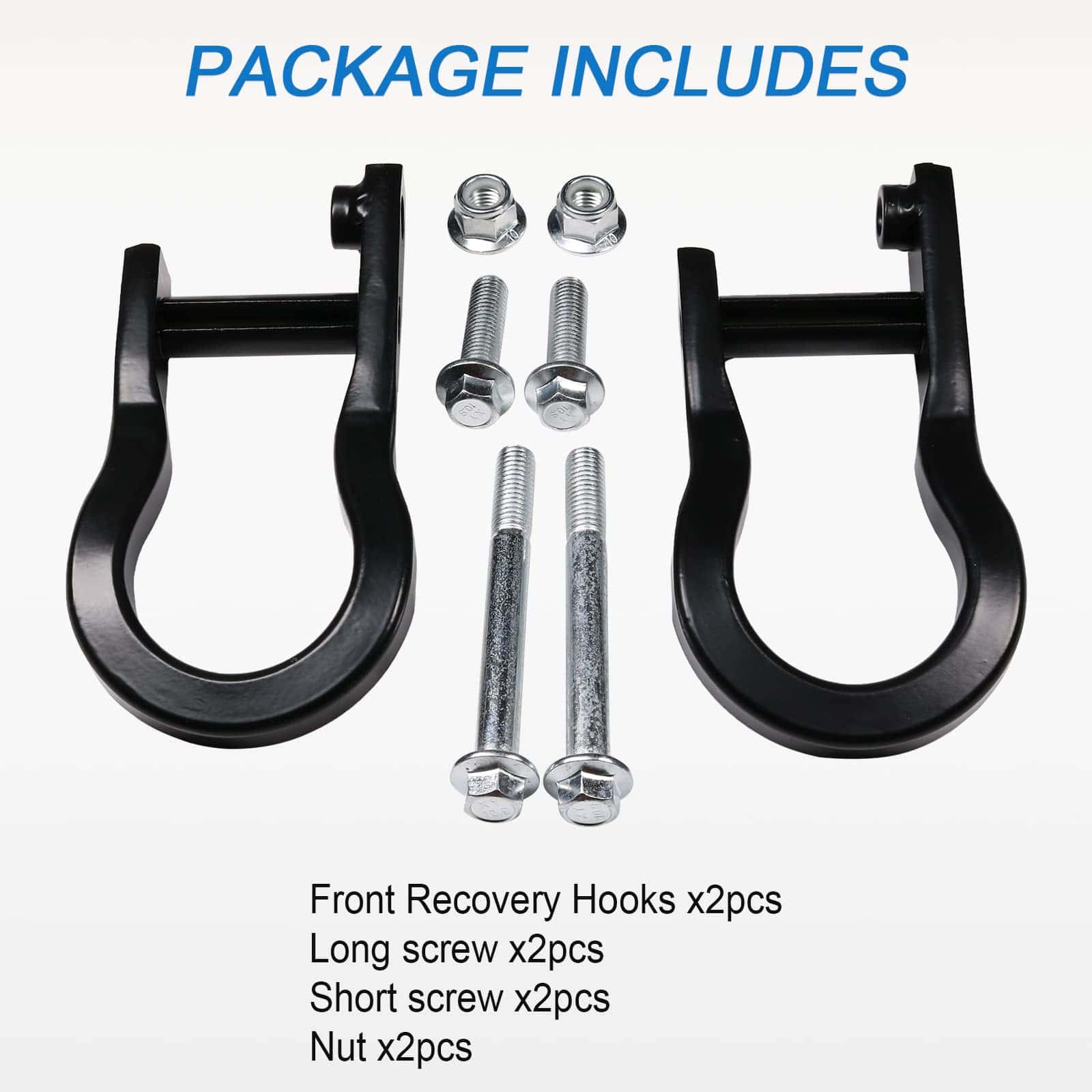 Paquete incluye: 2 ganchos de remolque y todos los pernos de montaje. (como en la imagen)