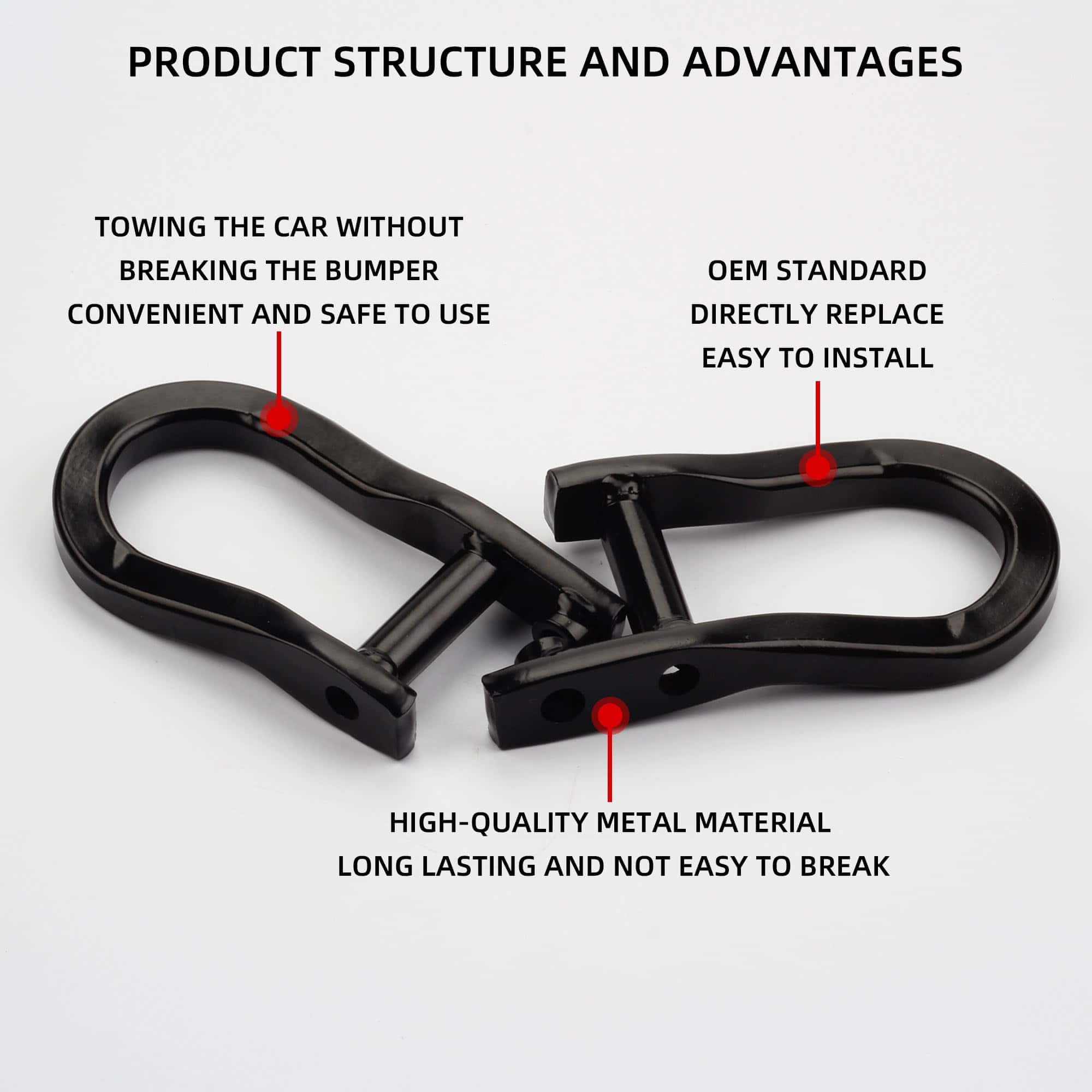 3. Características Hecho de material de metal de alta calidad, recubierto con pintura antiherrumbre, confiable y duradero, no es fácil de corroer y oxidar; Cuando tu auto se descompone, otras personas realizarán asistencia en carretera para ti a través del gancho de remolque, remolcando el auto sin romper el parachoques.