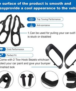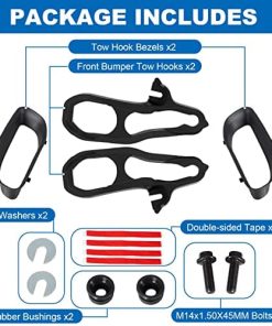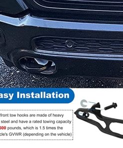 Color: negro y rojo Contenido del paquete: 2 ganchos de remolque delanteros (uno izquierdo y uno derecho), 2 tornillos. Nota: Si no estás seguro de si los ganchos de remolque delanteros son compatibles con tu coche, por favor contáctanos, haremos todo lo posible para asegurarlo. Si tienes algún problema con los ganchos de remolque delanteros, por favor contáctanos, te responderemos lo más rápido posible.