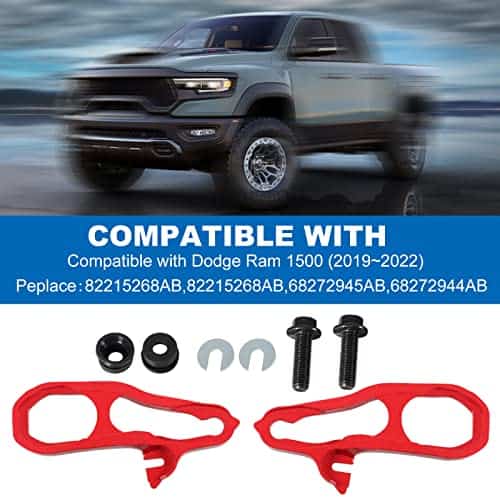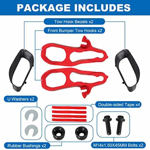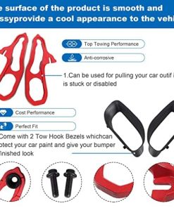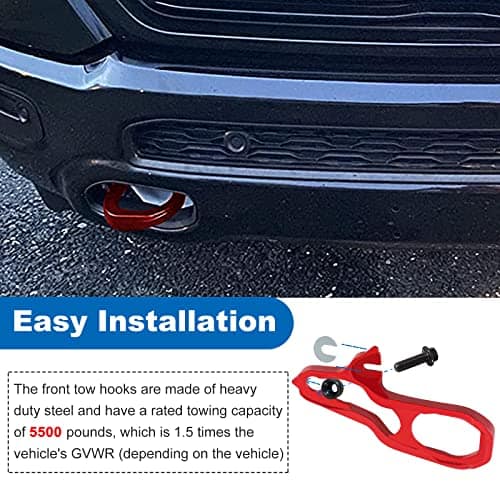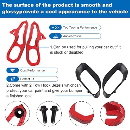 Color: negro rojo. Contenido del paquete: 2 ganchos de remolque delanteros (uno izquierdo y uno derecho), 2 tornillos. Aviso: Si no está seguro de si los ganchos de remolque delanteros son compatibles con su automóvil, contáctenos, haremos todo lo posible para asegurarlo. Si encuentra algún problema con los ganchos de remolque delanteros, contáctenos, le responderemos lo más rápido posible.