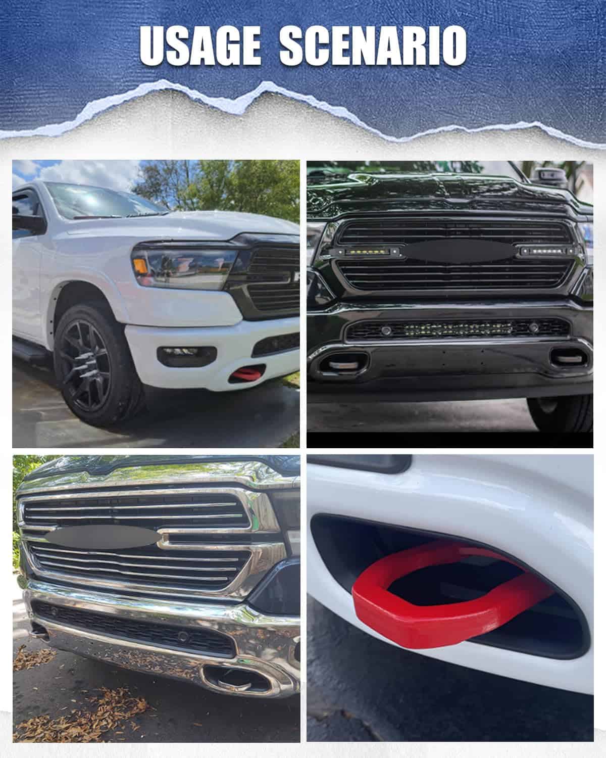 1. El kit de gancho de remolque delantero de Dodge Ram es compatible con la Dodge Ram 1500 2019-2023, con número de pieza de repuesto 82215268AB 68272944AB 68272945AB.