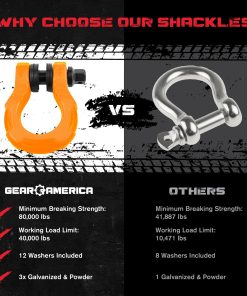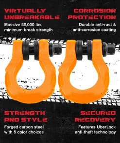 1. La Elección Profesional para Remolque y Recuperación Todo Terreno: Con una resistencia mínima de ruptura masiva de 80,000 lbs (40 toneladas) y una carga de trabajo de 40,000 lbs (WLL) 4 veces el peso de un 4×4 – estos Ganchos de Acero Forjado con Carbono manejarán prácticamente cualquier trabajo de remolque o recuperación de manera segura y segura. 2. Protección definitiva contra la corrosión: Con nuestro especial recubrimiento de tres etapas antióxido en los ganchos Y los pasadores, además de arandelas incluidas, estos ganchos durarán más que cualquier otro, y los colores audaces se verán increíbles en su 4×4, camioneta o SUV. 3. Anti-Robo y Mucho Más Seguro que los Ganchos de Remolque: La conexión rápida y segura para anclar su cuerda de recuperación, accesorio salvador de árbol o bloque de tiro significa que no se deslizará durante el remolque y se convertirá en un proyectil peligroso; La tecnología Anti-Robo de UberLock pendiente de patente significa que sus Ganchos UBER no serán robados ni se caerán mientras conduce. 4. Compre con Confianza: Todos los productos de GearAmerica incluyen nuestra garantía de por vida líder en la industria sin problemas de sustitución. 5. Si Amas la Carretera Abierta, Únete a Nosotros: Nuestra misión es abogar y vivir un estilo de vida de libertad, con respeto por la naturaleza y la maquinaria, por eso el todoterreno es nuestro ajuste perfecto; por eso nuestro equipo de recuperación es el último que necesitarás