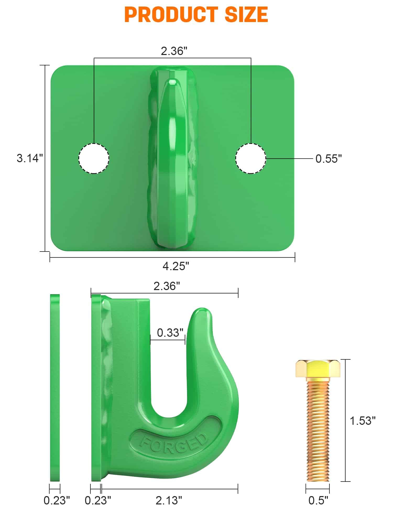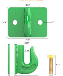 1. Ganchos para cubo de tractor que contienen 2 ganchos de remolque de 5/16″ de grado 70 atornillados, 4 pernos de grado 8.8, y 4 tuercas de grado 8.8, instalados en minutos. El gancho de remolque está clasificado para 15,000 lb. (Peso máximo de rotura).