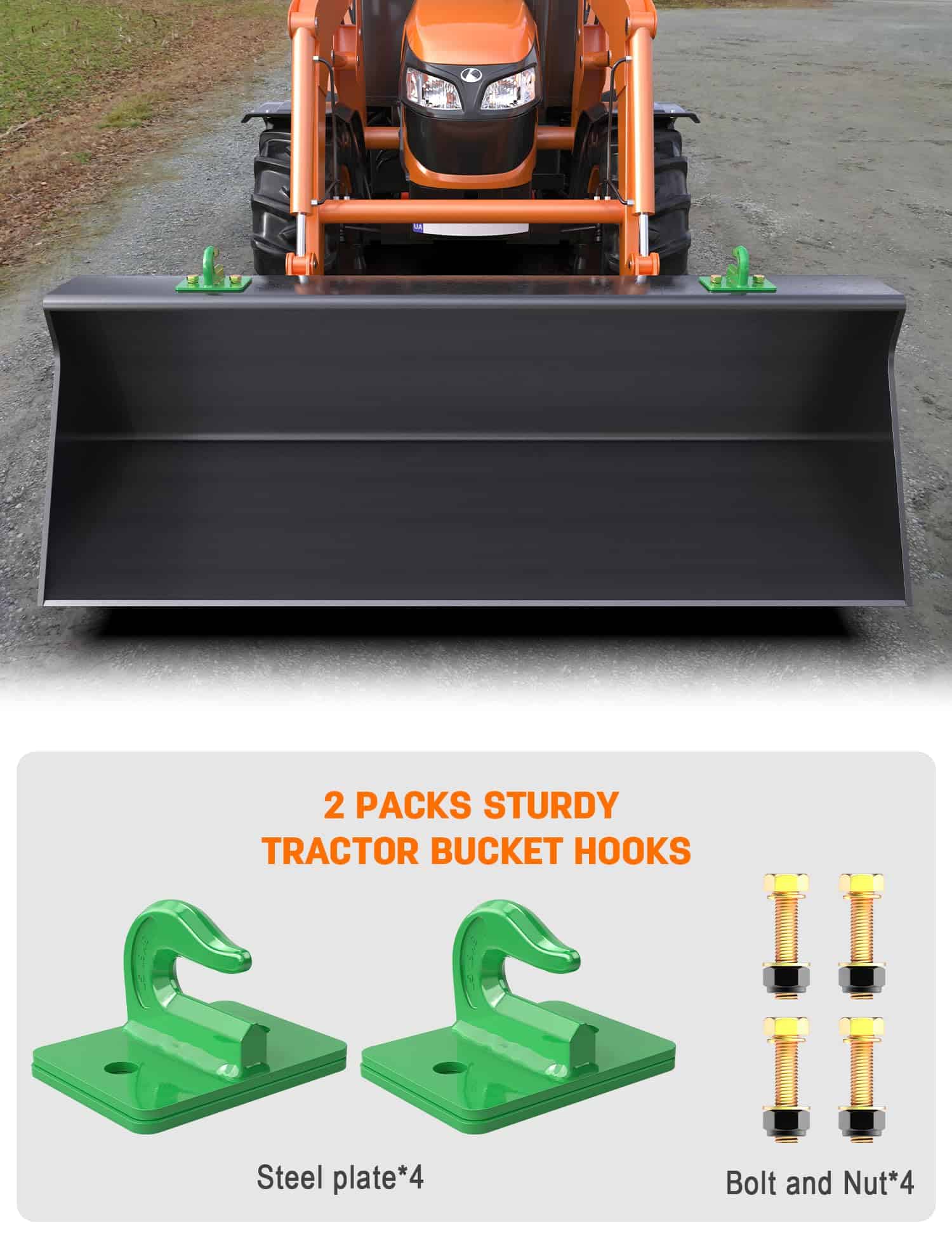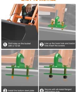 4. Los ganchos de remolque para cubo de tractor se ajustan a varios cargadores de tractor. Compatible con Kubota John Deere New-Holland Kioti Bobcat, etc. Y están disponibles en naranja, rojo y negro, que pueden coincidir con los colores de la mayoría de los tractores.