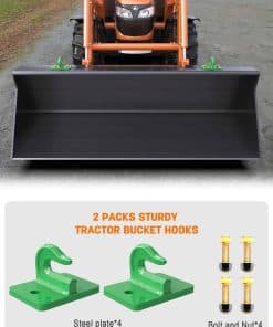 2. Los accesorios profesionales para cubo de tractor, base sólida, ganchos fuertes, soldadura perfecta, acabado fantástico, es un buen ayudante para el trabajo de su cubo de tractor. El montaje completo está plateado de cromato de zinc engrosado para protección contra el clima.