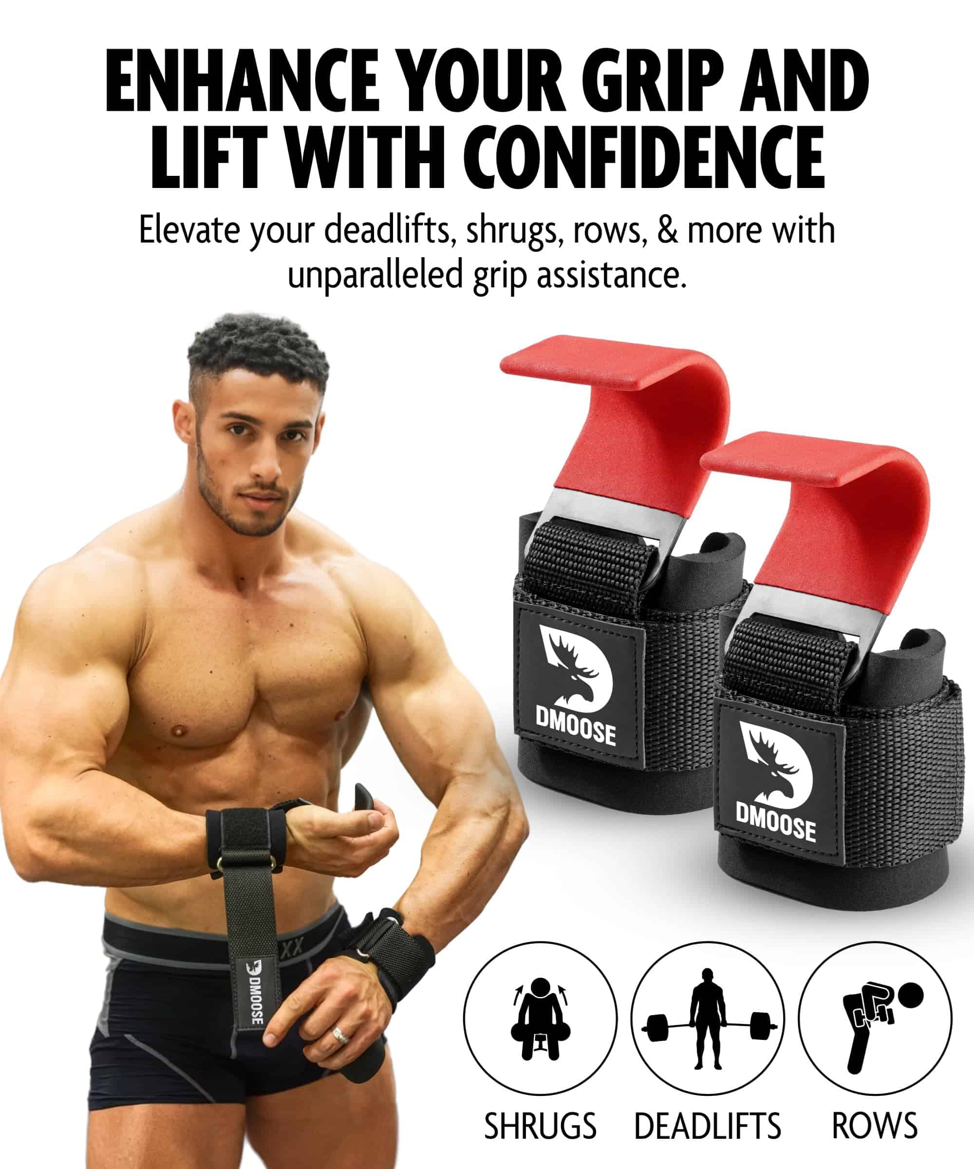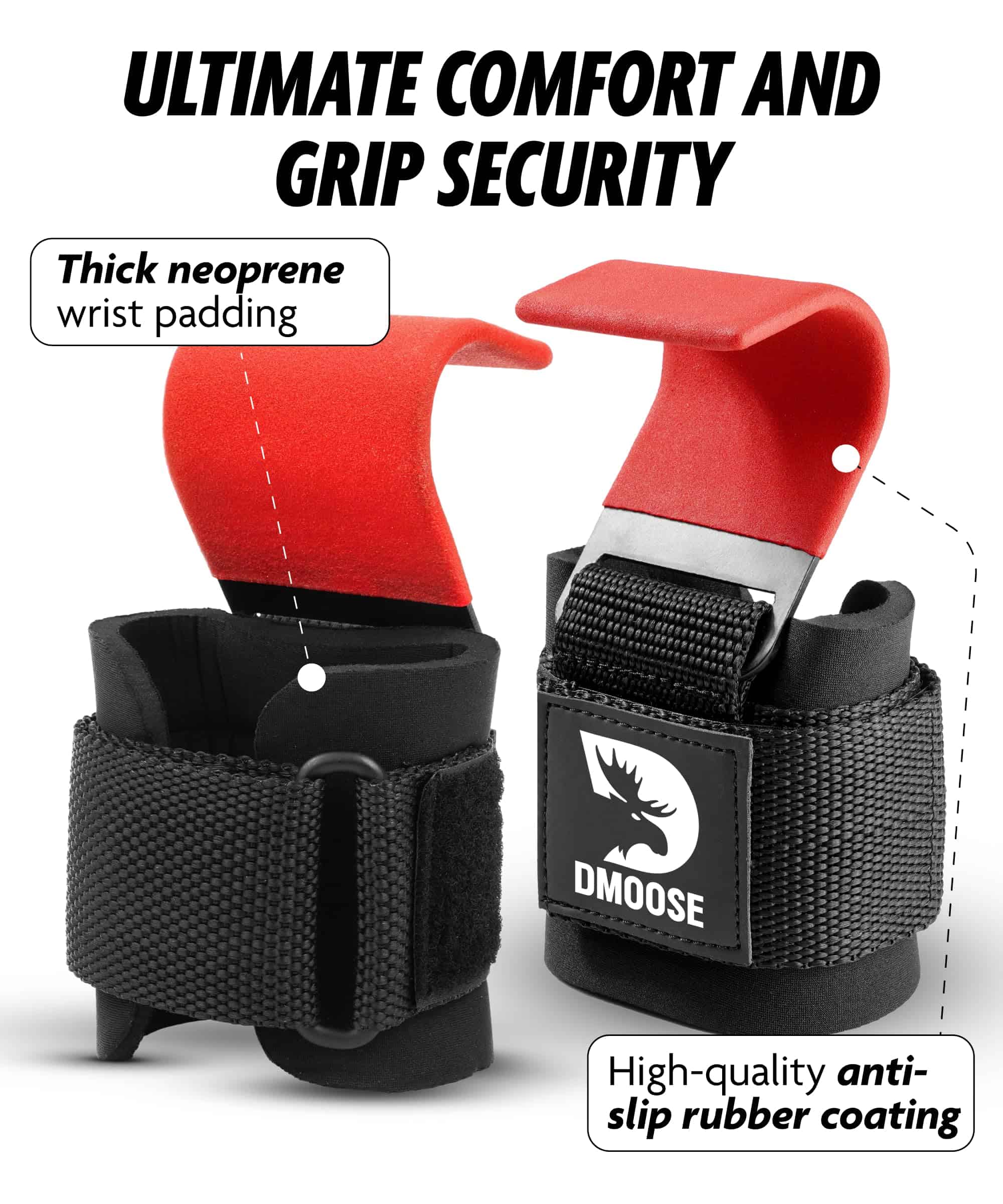 Ganchos para Levantamiento de Pesas DMoose -Rojo