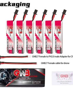 – Embalaje: 6 piezas de baterías LiPo; 1 Adaptador externo GNB27 hembra a macho PH2.0 para cargador, 1 cable externo GNB27 hembra para dron; 1 hoja de pegatinas y 1 instrucción.