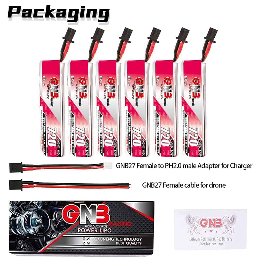 GAONENG 6pcs GNB 720mAh 1S Batería LiPo 100C 200C 3.8V con