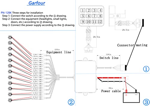 El interruptor es pequeño y fácil de instalar. Con 12 colores de seguridad + 12 relés, puede proteger mejor el equipo. La caja de fusibles 12+12 tiene nivel de impermeabilidad ip65. Ya sea un vehículo todo terreno o un barco, es muy seguro. Controla el equipo en vehículos todo terreno, barcos, etc., como faros, ventanas, etc. ¡El servicio al cliente de Garfour está en línea las 24 horas del día! ¡Responda cualquier pregunta para usted!