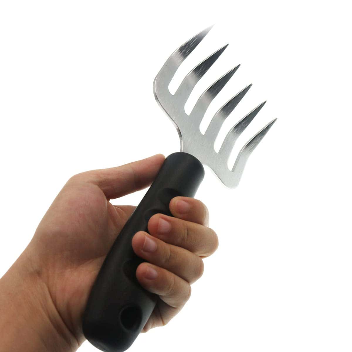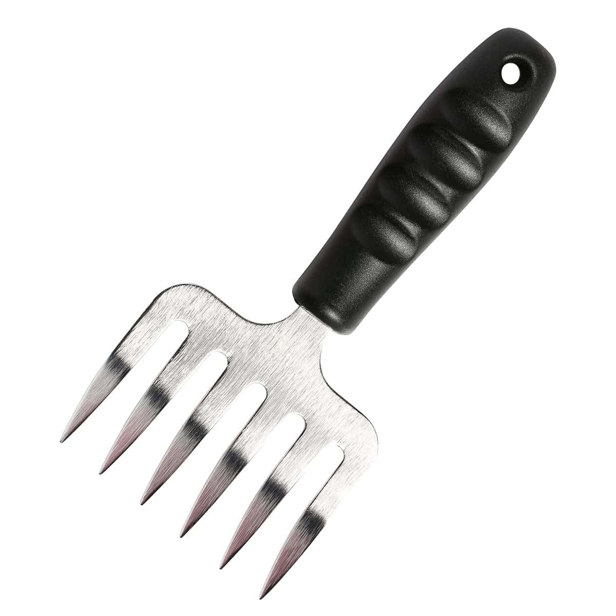 Garras Trituradoras de Carne para Desmenuzar, Levantar Cerdo Desgarrado, Pollo, Pavo – Tenedor de Barbacoa de Acero Inoxidable – Herramienta de Oso. Hechas de acero inoxidable grueso, estas garras trituradoras de carne son ideales para desmenuzar, levantar y manipular cerdo desgarrado, pollo, pavo y otros tipos de carne. Los dientes de acero inoxidable son fuertes y resistentes, garantizando que no se doblarán incluso con una carga pesada. El mango de plástico está moldeado directamente en las garras, lo que significa que no hay uniones para que la comida se pegue, facilitando la limpieza. Además, el mango es lo suficientemente ancho para una mano grande y se extiende para cubrir la parte de acero, protegiendo tu mano. La forma ovalada del mango hace que sea fácil de operar y el mango ergonómico reduce la tensión en las muñecas. Estas garras trituradoras de carne son lo suficientemente afiladas para facilitar su uso, pero seguras para evitar cualquier riesgo de cortes. Además, son un gran ahorrador de tiempo, ya que te permiten desmenuzar la carne rápidamente y eficientemente sin el desorden y los dolores de cabeza de los cuchillos y tenedores. ¡Conviértete en un verdadero oso de la barbacoa con estas increíbles garras trituradoras de carne de acero inoxidable!