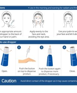 A.t.o.m.y Absolute Skincare How to use 1. Abrir y presionar el botón en la parte superior para dispensar el producto. 2. Presionar nuevamente el botón para dispensar más producto, si es necesario. 3. Cerrar bien.