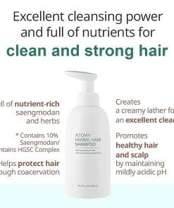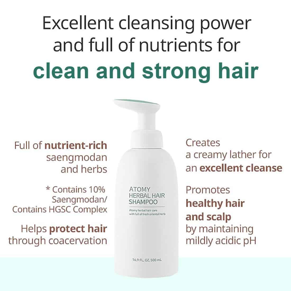 Atomy Deep Cleansing Shampoo Directions After pumping sufficient amount on the palm, massage the scalp softly for 1-2 minutes. Massage by pushing and pulling softly from left to right and up and down. This promotes scalp circulation by repetition. Then, rinse thoroughly with warm water.