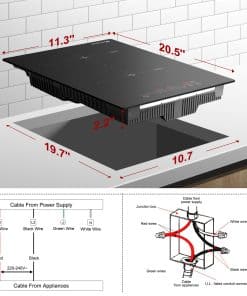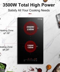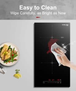 Gasland Chef IH30BF Placa de Inducción de 12 pulgadas con 2 quemadores empotrados con protección contra sobrecalentamiento y bloqueo de seguridad para niños para garantizar la seguridad. Esta placa de inducción eléctrica tiene una superficie de vidrio vitrocerámico. Es fácil de limpiar. Tenemos un equipo local de atención al cliente profesional en América que le brinda soporte instantáneo. Por qué elegirnos: Más seguro: con protección contra sobrecalentamiento y bloqueo de seguridad para niños, puede utilizar esta placa de inducción electromagnética de forma segura. Más profesional: con 2 quemadores diferentes, este cocinero de inducción puede brindarle una gran experiencia de cocinado a usted. Más conveniente: tenemos un equipo de servicio profesional local, que puede ayudarlo a resolver problemas de manera más eficiente. Más económico: Esta placa de inducción de 2 quemadores con una superficie vitrocerámica lisa. Es duradero para un uso prolongado. Características: Control táctil con sensor y pantalla digital. Placa de inducción empotrada y de pie libre. Vidrio vitrocerámico resistente a los arañazos. Cierre de seguridad infantil: El cierre de seguridad para niños puede evitar el uso no intencionado. Por ejemplo, niños que encienden accidentalmente las zonas de cocción. 9 niveles de potencia por zona de cocción. Placa de cocina de inducción simple y fácil de limpiar. Peso neto: 9.30 lb. Dimensiones de corte: 10.7″ x 19.7″. Zona de cocción 2000W(7.1″) + 1500W(6.3″). Lista de empaque: 1 placa de cocina de inducción nueva a estrenar. 1 kit de montaje de instalación. 1 manual de instrucciones en inglés. Nota amable: Esta placa de cocina viene con un cable de alimentación óptimo, pero debe ser instalado por un electricista calificado.