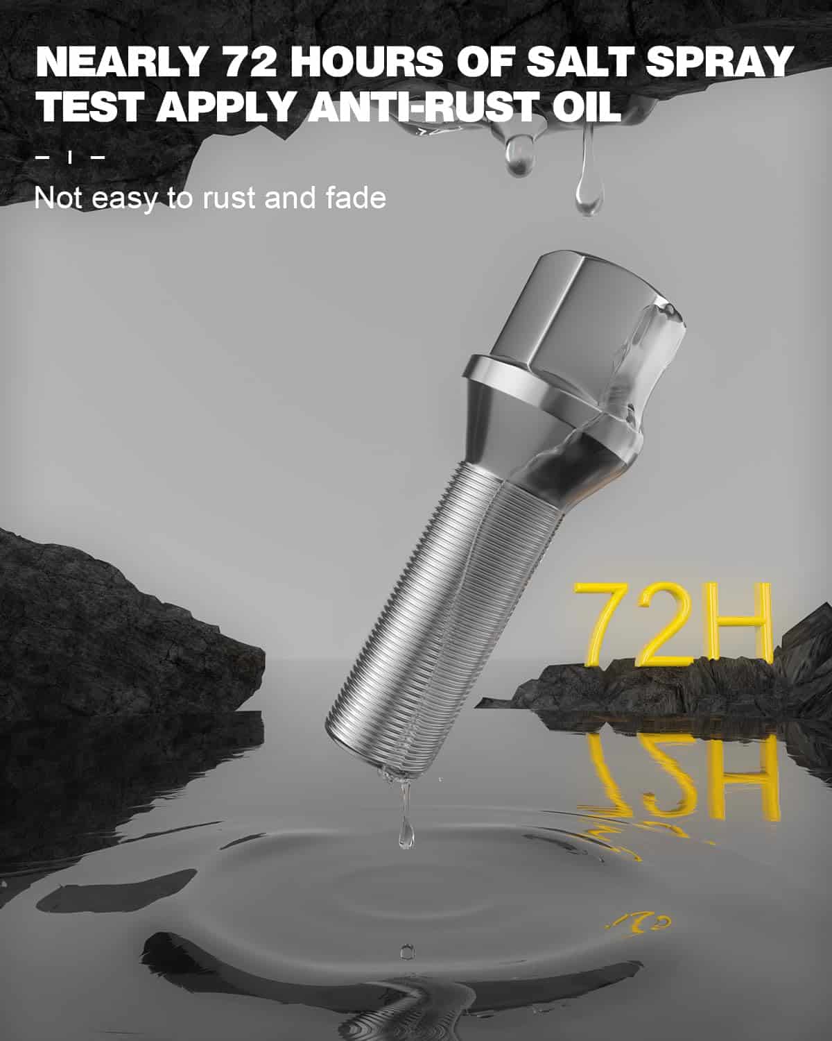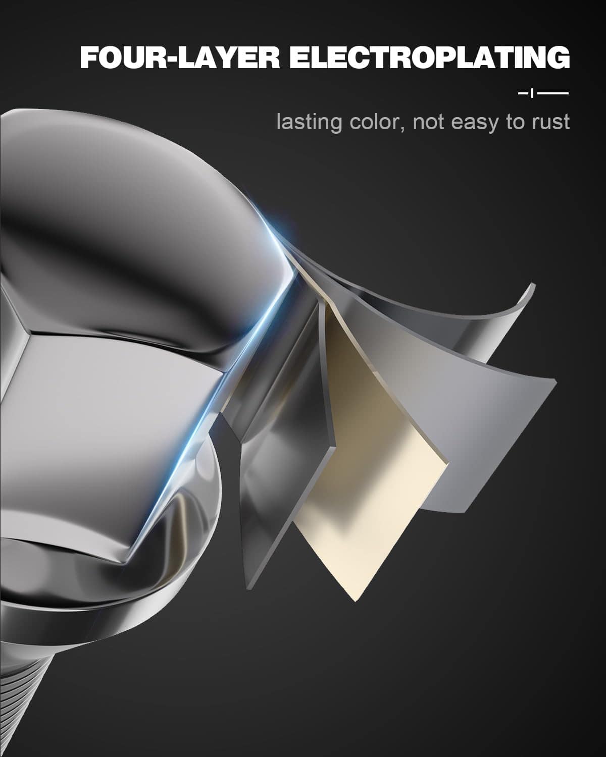 Nuestros pernos de rueda cromados están hechos de acero de alta calidad. Después de la plateado de cuatro capas y 72 horas de prueba de pulverización de sal, aplicamos aceite anti-óxido. No es fácil de oxidar y desvanecer. El perno de rueda de una pieza reemplaza el diseño original de perno de dos piezas, lo que evita el problema de expansión y agrietamiento del perno original, y es más seguro y confiable. Nuestros 20 piezas de pernos de rueda son un poco más largos que los pernos originales, lo que no afecta el uso, y el aumento del número de dientes aumentará considerablemente la seguridad. Nota – Verifica el tamaño del perno de rueda del vehículo, el asiento y la rosca. Verifica el tamaño del rosca del perno de rueda de tu vehículo, ya que los tamaños de los pernos varían de un año a otro/modelo. Estos son pernos de asiento cónico. Asegúrate de que el asiento del perno de rueda tenga este tipo de asiento. Si tienes alguna pregunta, no dudes en contactarnos.