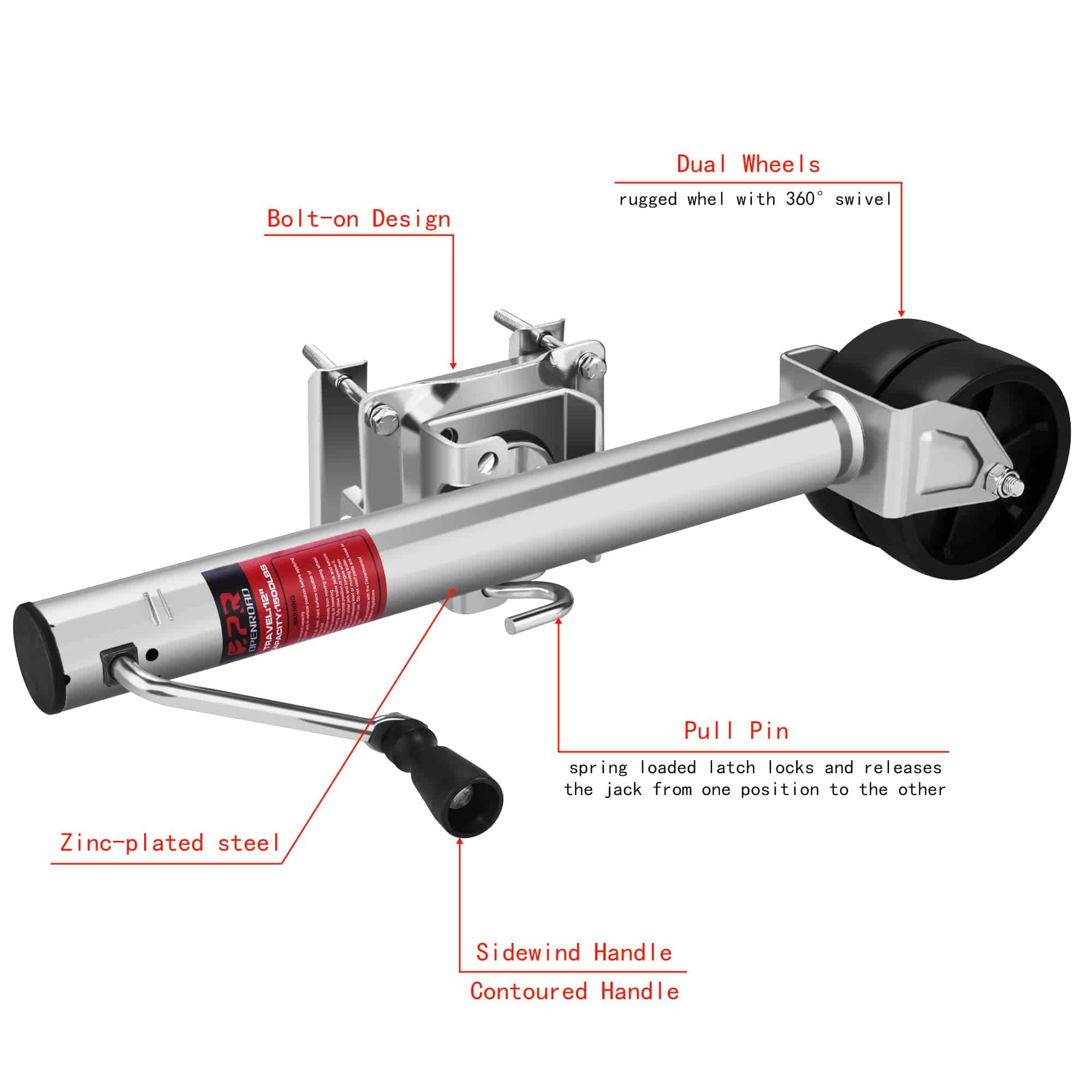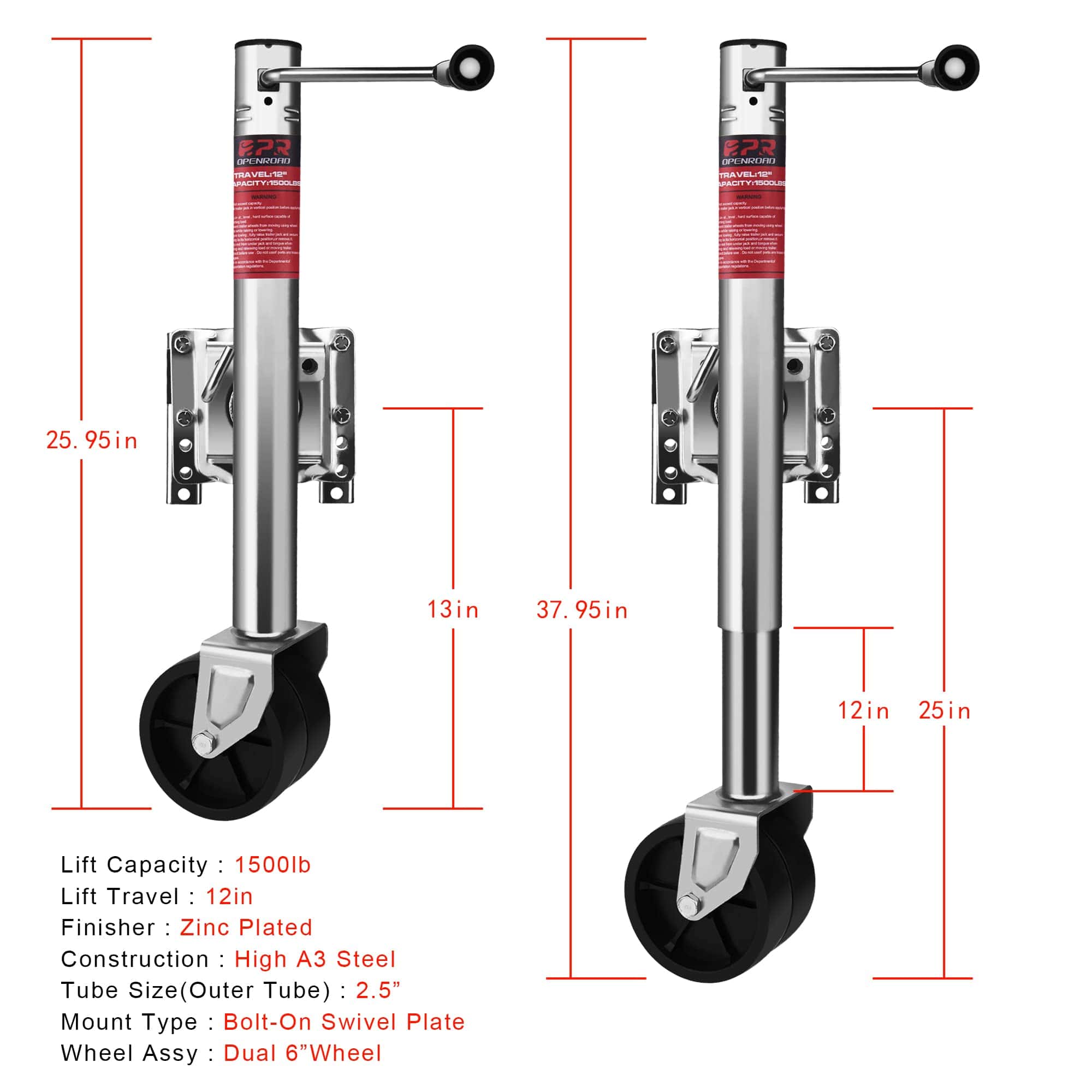 Artículo: Gato de Remolque Para Barcos de 1500 lbs, Gato de Lengua del Remolque con Ruedas de 6 Pulgadas, 12 Pulgadas de Recorrido Vertical del Gato del Remolque, Gato de Ruedas Dobles
