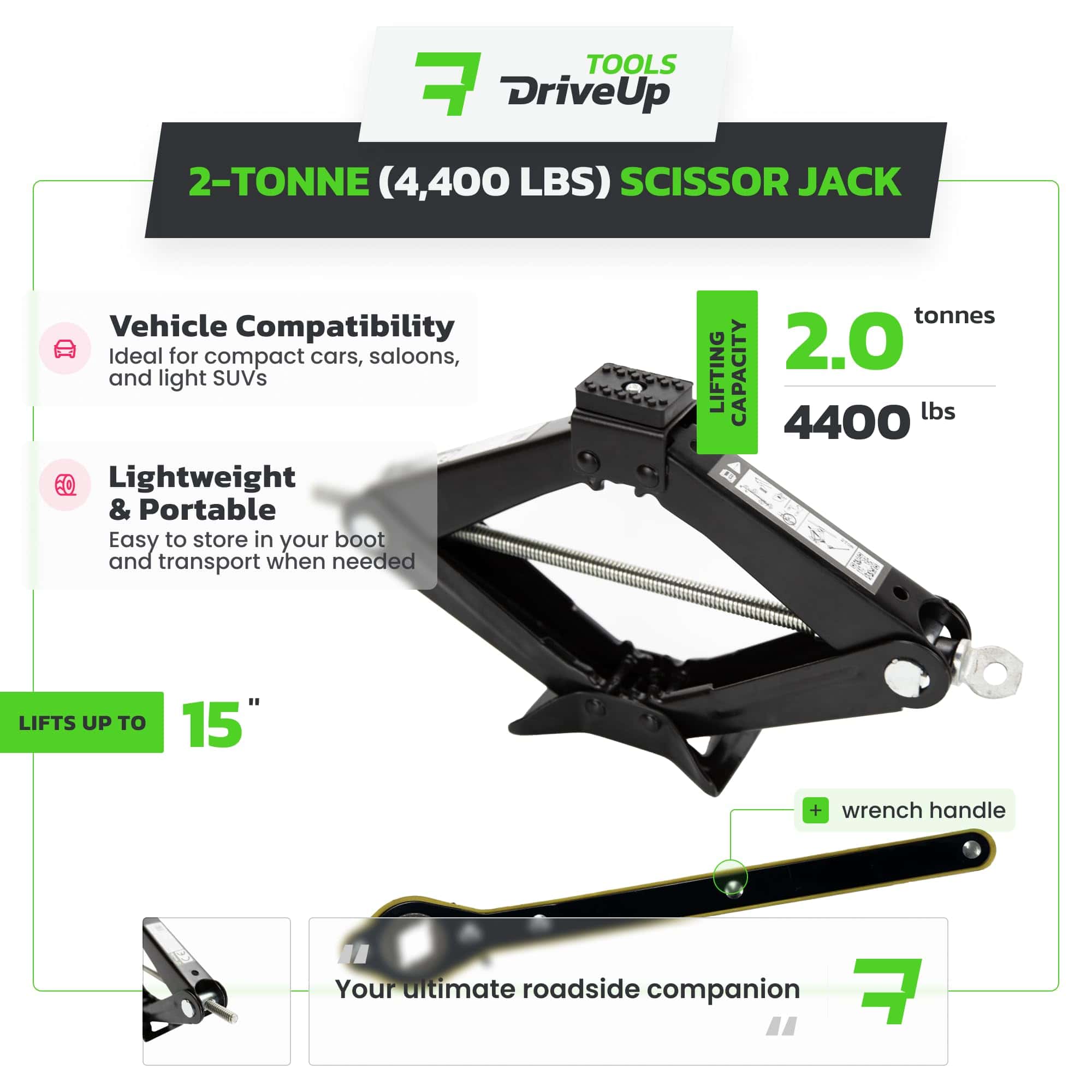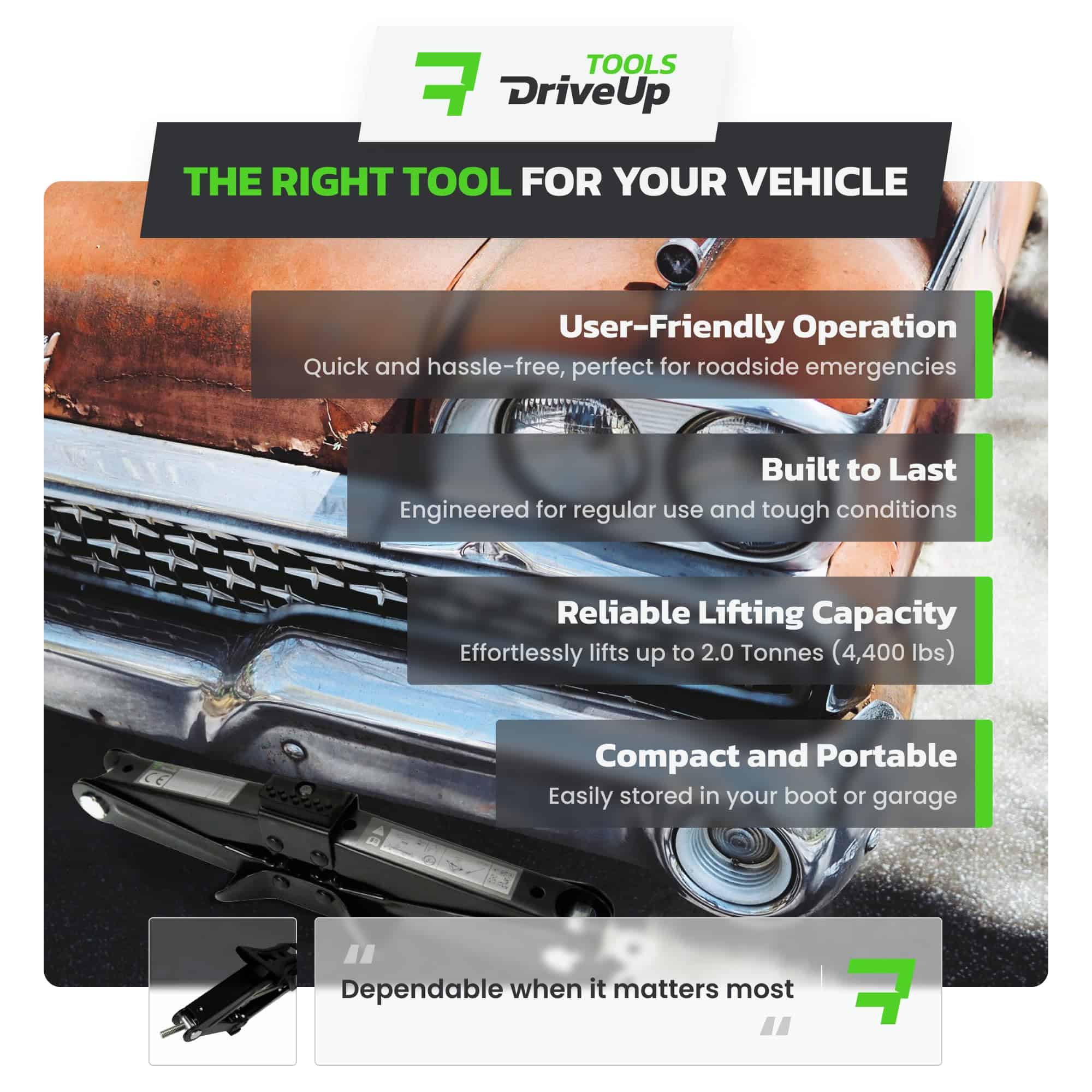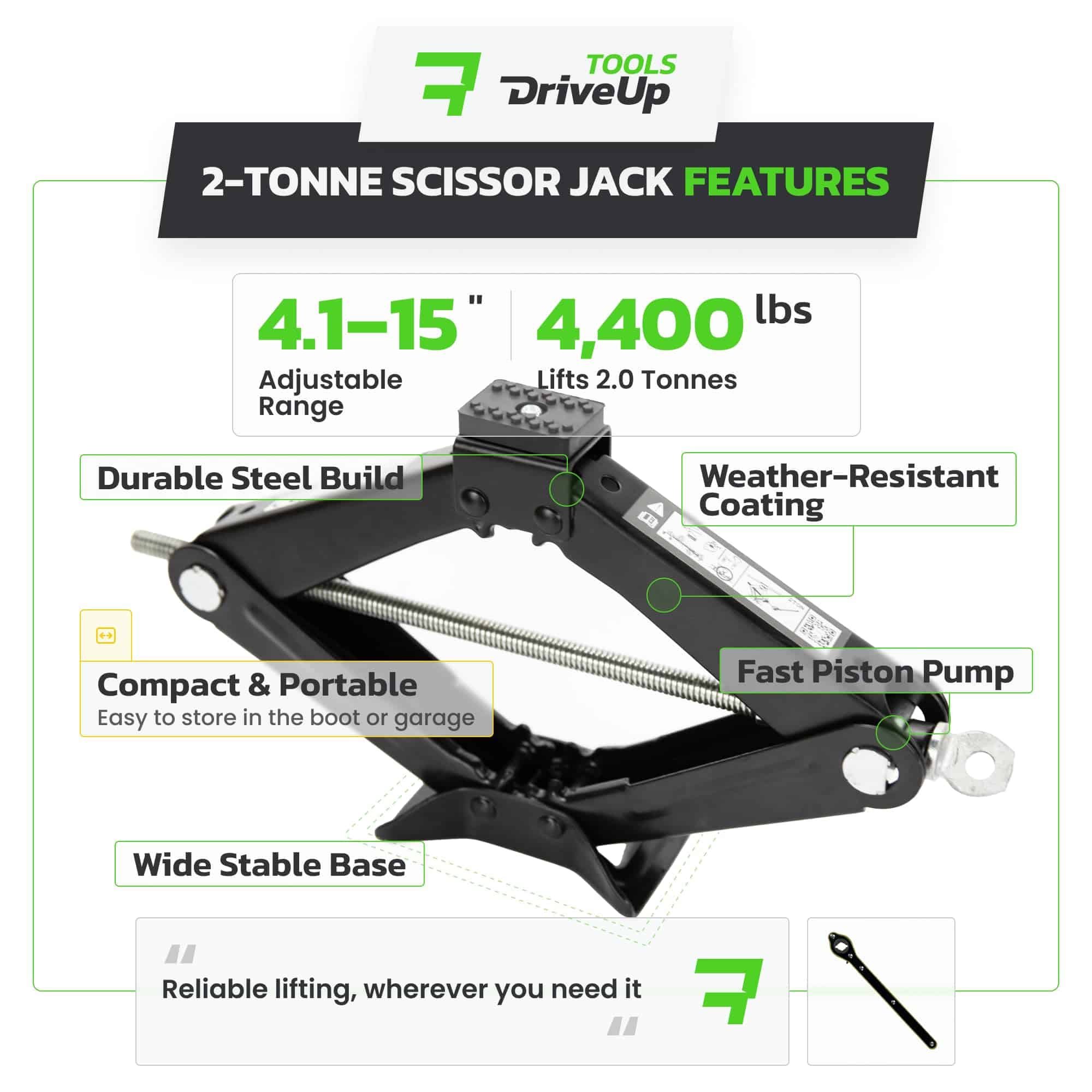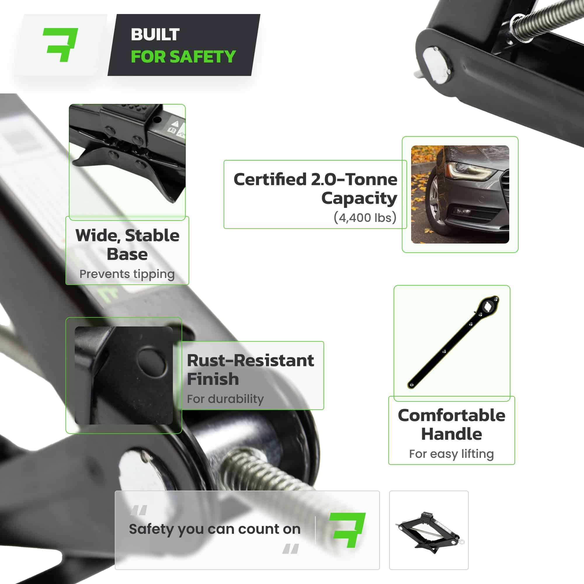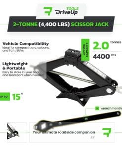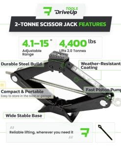4. GATO DE COCHE UNIVERSAL Gato de Tijera Portátil de 2 Toneladas Adecuado para la mayoría de los vehículos: Sedán, Coupé, SUV, MPV, Hatchback, Crossover, Wagon y más. Un buen kit de cambio de neumáticos para su vehículo.