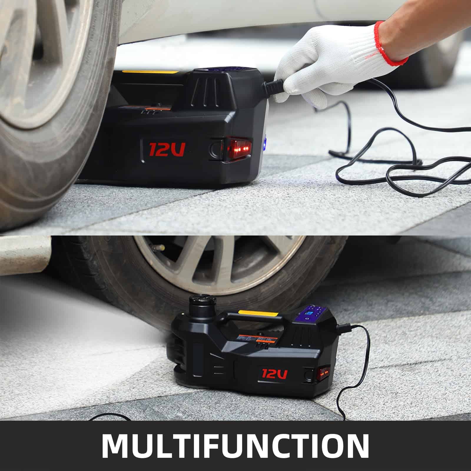 3. MULTI-FUNCIONAL: Este gato eléctrico para automóvil está equipado con una bomba de aire automática y una luz LED brillante integrada. Por lo tanto, puede satisfacer múltiples necesidades de entorno. Incluso los principiantes pueden manejarlo fácilmente.