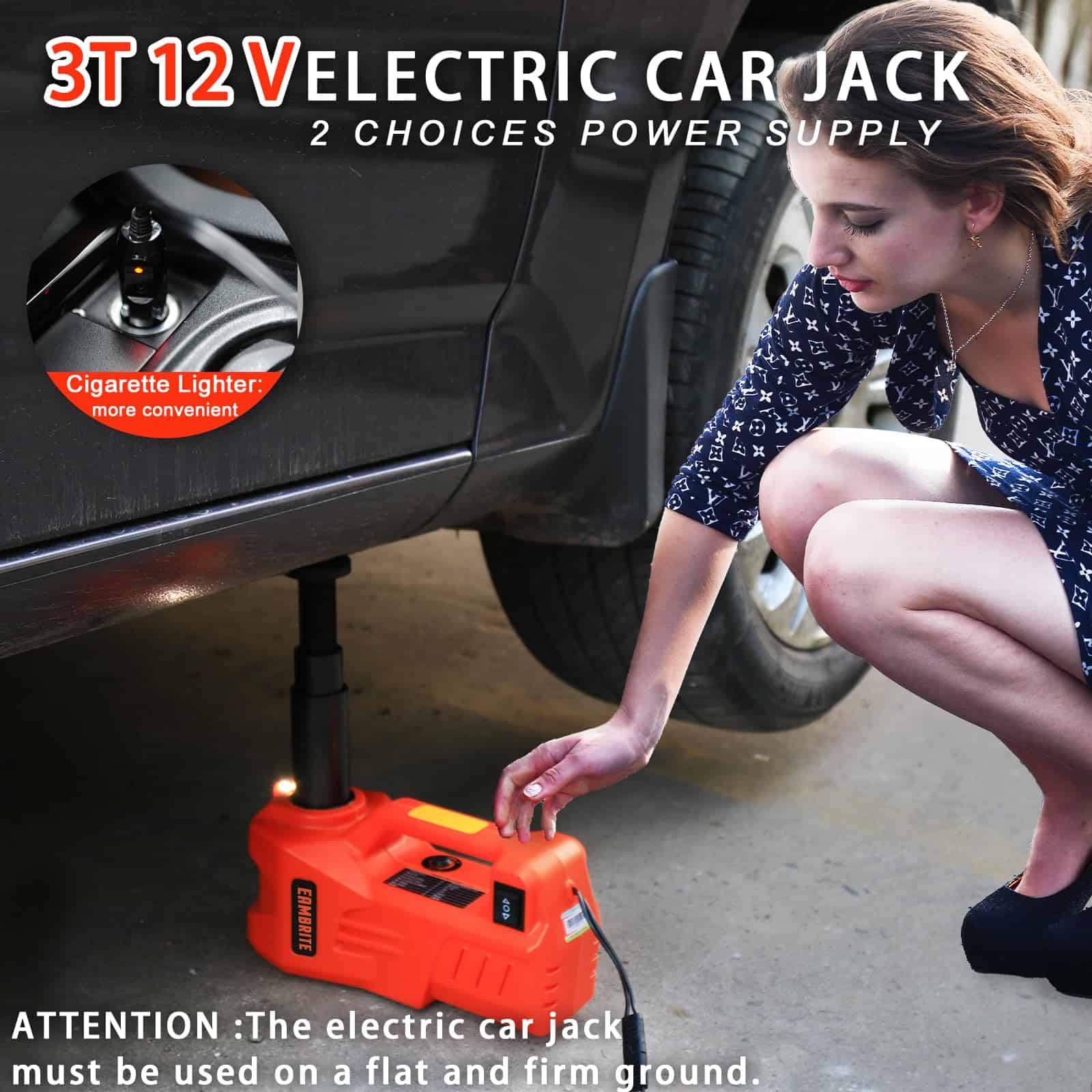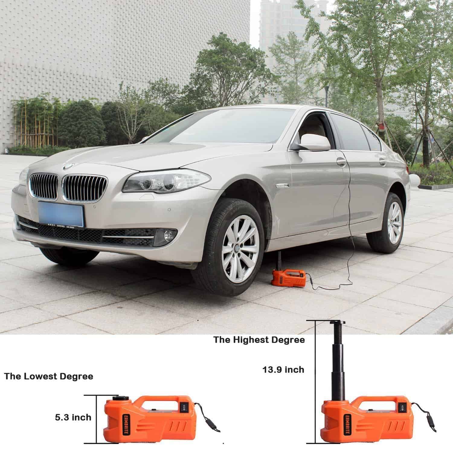 Compacto y portátil, este gato hidráulico es la opción perfecta como gato de emergencia en carretera durante sus viajes en automóvil. No deje que un pinchazo o una llanta desinflada lo detenga en su camino: el gato eléctrico hidráulico EAMBRITE de 3 toneladas le brinda la tranquilidad de poder solucionar cualquier problema de elevación con facilidad y rapidez. ¡Ordene el suyo hoy y viaje con seguridad siempre!