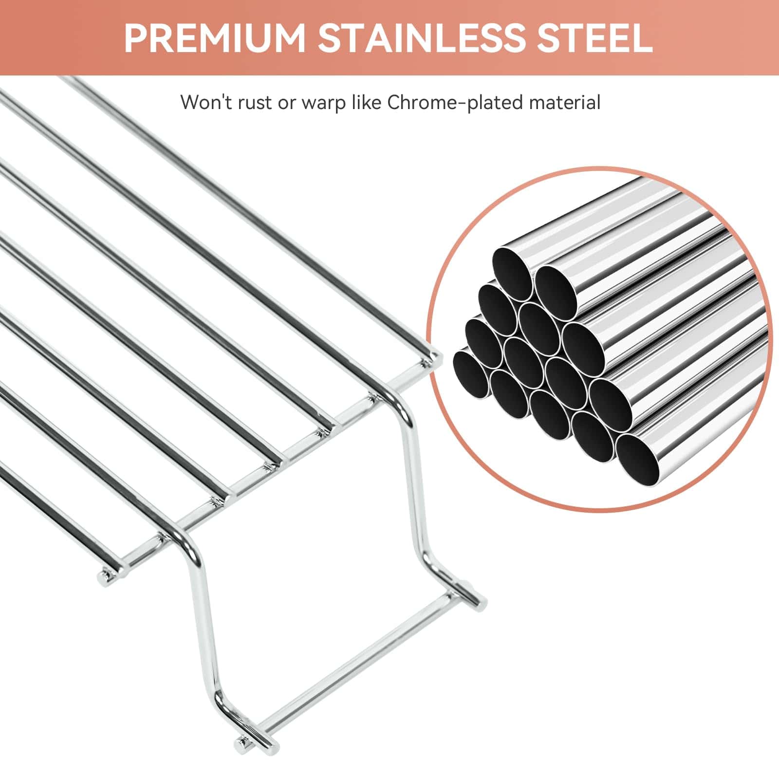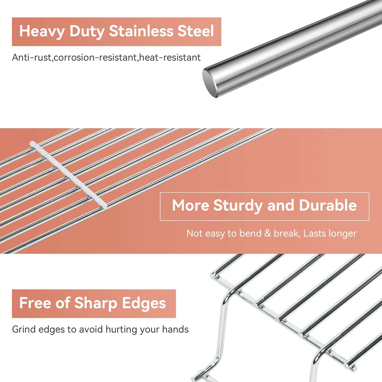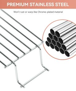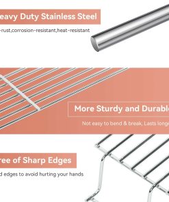 3. Material Premium La construcción sólida de acero inoxidable de nuestro 69886 warming rack los hace perfectos para cocinar. Sosteniendo alimentos más pesados y resistiendo el pandeo, antióxido, resistente a la corrosión, protege su salud y seguridad.