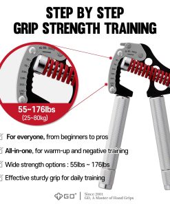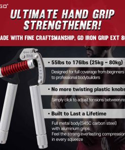 El GD IRON GRIP Hand Grip Strengthener es el entrenador perfecto para mejorar tu fuerza de agarre. Con la capacidad de ajustar la resistencia de 55 a 176 libras en 6 etapas, así como cambiar el ancho de agarre en 3 etapas, puedes personalizar tu entrenamiento para adaptarse a tus niveles de fuerza y objetivos. Construido con mangos de aluminio, resortes de compresión fuertes y hierro 4T, el GD Iron Grip es extremadamente duradero y seguro. Además, combina 6 fortalecedores de agarre en uno solo, lo que significa que obtienes múltiples opciones de resistencia en un solo dispositivo. Realiza tus ejercicios de mano, agarre, muñeca y antebrazo en silencio en cualquier lugar con el GD Iron Grip. Las extensiones incluidas te permiten ampliar las posibilidades de entrenamiento al ajustar la longitud de los mangos. Con todas estas características y su diseño patentado, el GD IRON GRIP es el único fortalecedor de agarre que necesitarás para alcanzar tus objetivos de fuerza.