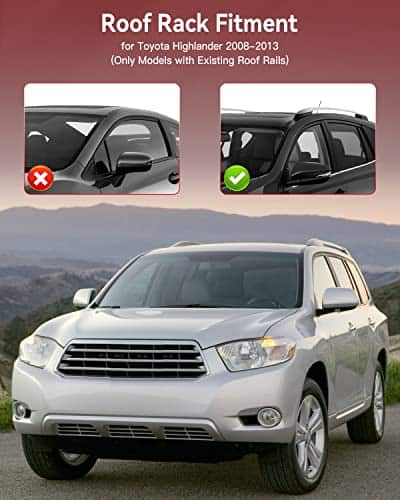 Specifications: Color:Silver Load-bearing:165LBS Compatibility: for Highlander 2008-2013 Packaging: 2Pcs Roof rack crossbar Necessary Mounting Hardware Are Included. Note: Please choose the appropriate item according to make/year/model. Thank you for your choice!