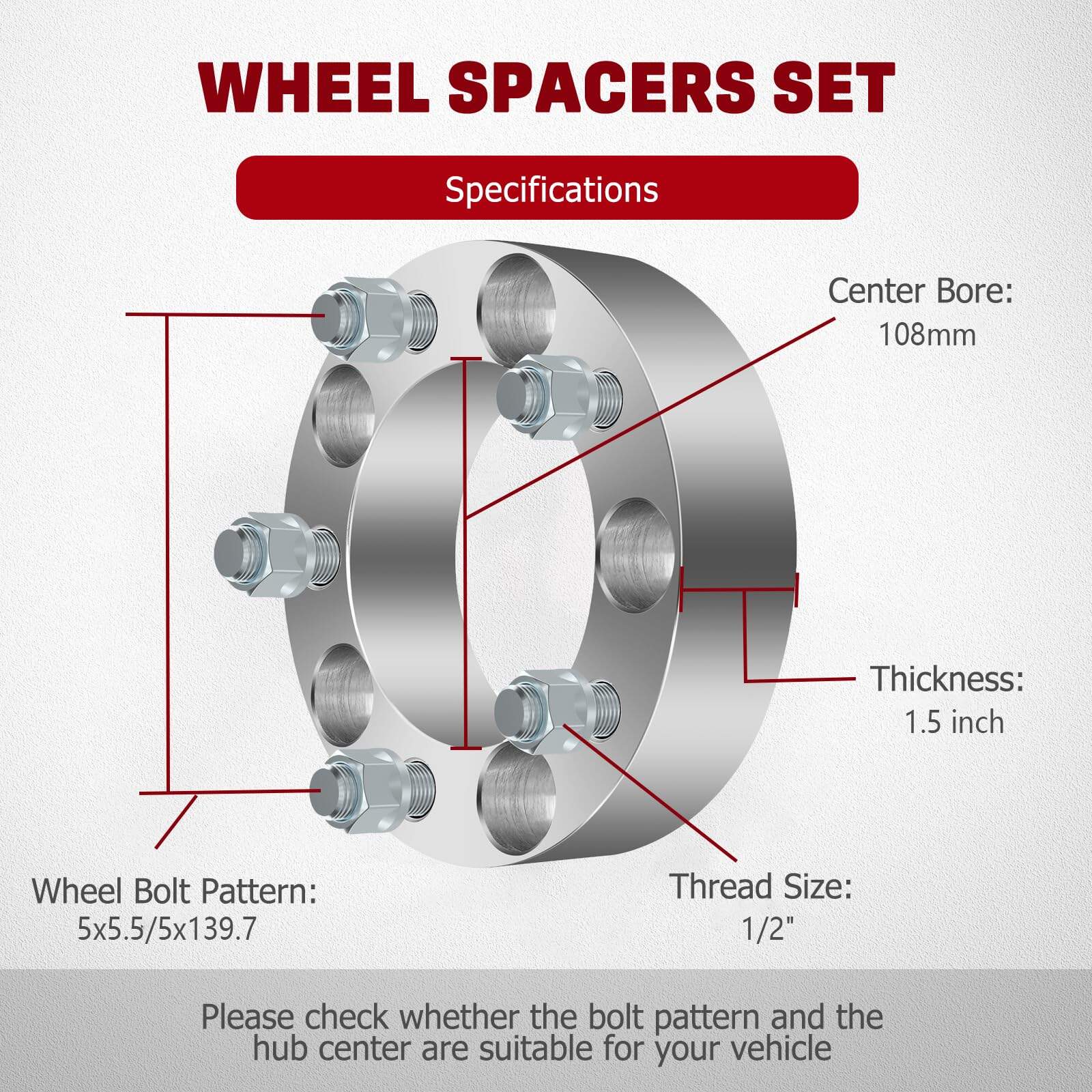 Los Separadores de Rueda GDSMOTU de 1.5 pulgadas para Jeep CJ5 CJ6 CJ7, Ram 1500 Van/B1500/W150, Ford F150/E150/Bronco son la solución perfecta para mejorar la apariencia y las características de manejo de su vehículo. Con un espesor de 1.5 pulgadas y un patrón de pernos de 5×139.7, estos adaptadores y separadores son ideales para Ford Bronco 1966-1996, Ford F-150 1975-1996, Ford E-150 Club Wagon 2003-2005, Jeep CJ5 1959-1983, Jeep CJ6 1959-1975, Jeep CJ7 1976-1986, Dodge Ram 1500 1994-2001, Dodge Ramcharger 1974-1993, y Dodge W150 1977-1993. Están fabricados con aluminio 6061-T6 y tecnología de procesamiento CNC, lo que garantiza un ajuste preciso y una mejoría en la estabilidad y seguridad al conducir. El empaque incluye 4 separadores de rueda y 20 pernos de alta resistencia, asegurando una instalación segura y duradera. Con nuestro servicio satisfactorio de reembolsos y reemplazo de piezas, puede estar seguro de adquirir un producto de calidad. ¡Mejore su vehículo con los Separadores de Rueda GDSMOTU ahora!