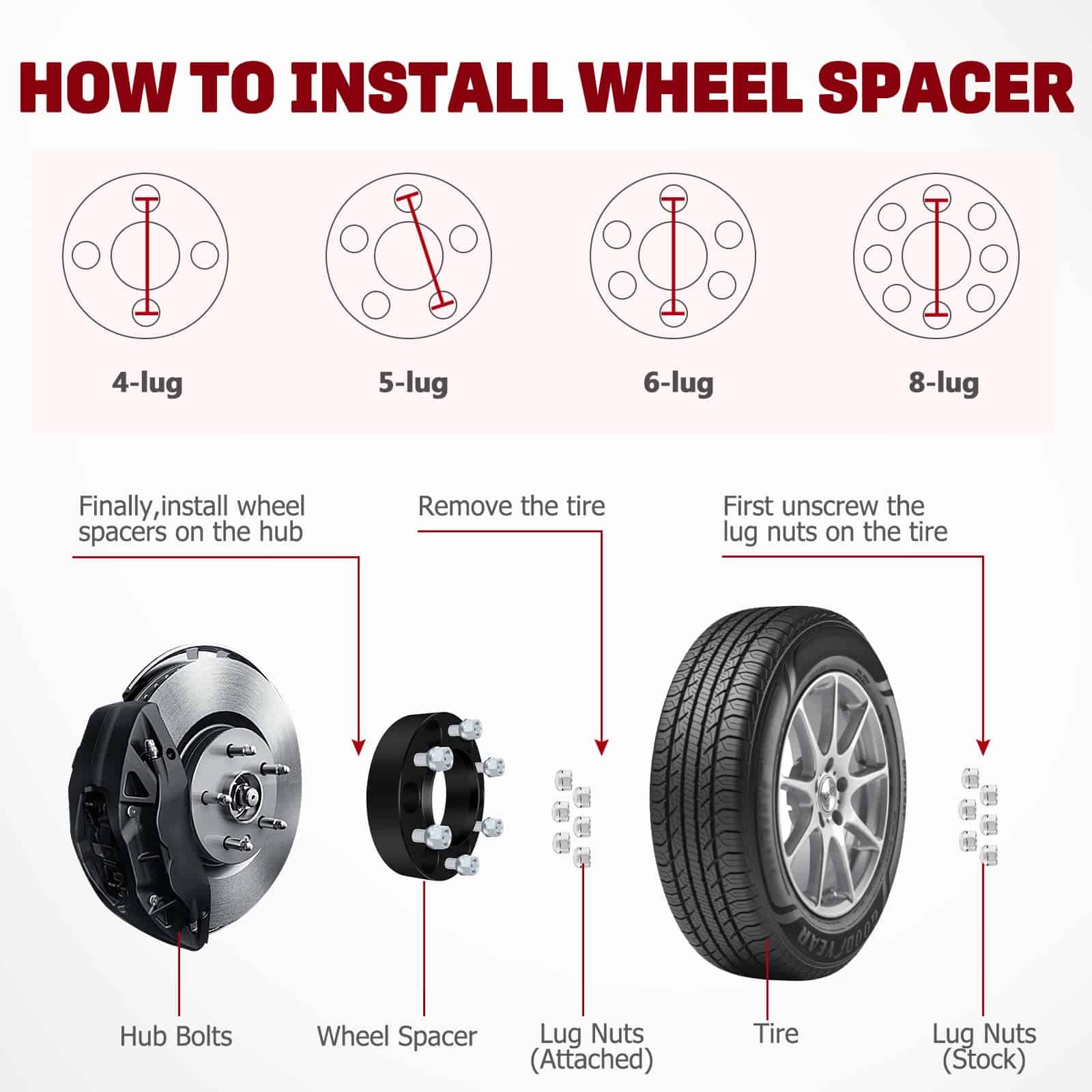 4. NOTA – No todos los automóviles son adecuados para montar separadores de rueda. Si no sabe si su automóvil es adecuado, puede contactar a nuestro servicio al cliente.