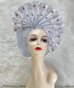 1. Diseño de moda: Moda Auto Gele Headtie, mostrando un diseño único y una artesanía meticulosa. Perfecto para mujeres que desean expresar su gusto por la moda en bodas, fiestas y otras ocasiones especiales.