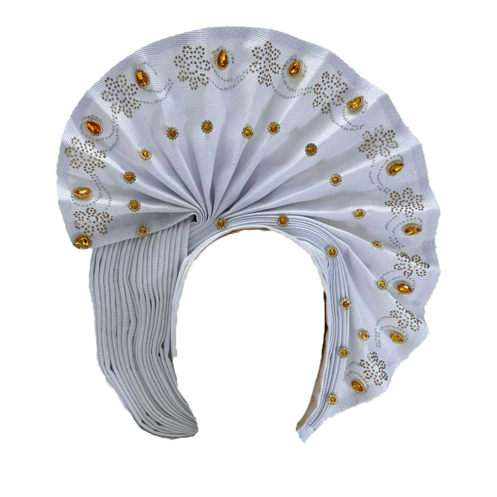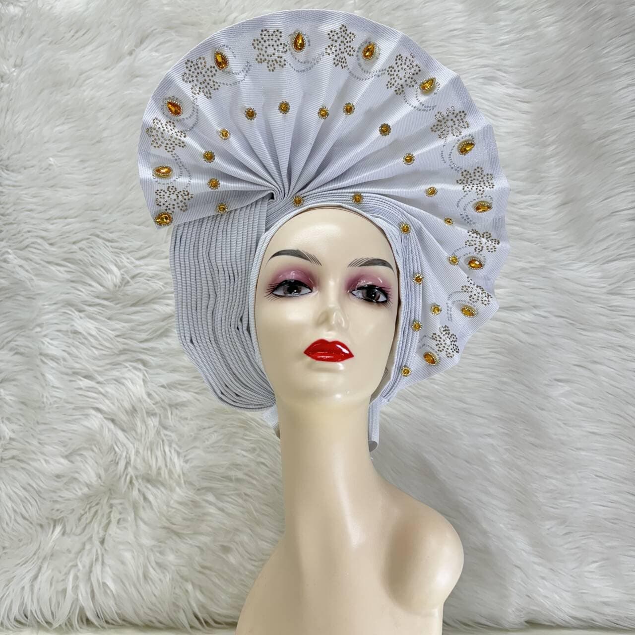 Diseño de moda: Moda Auto Gele Headtie, mostrando un diseño único y una artesanía meticulosa. Perfecto para mujeres que desean expresar su gusto por la moda en bodas, fiestas y otras ocasiones especiales.