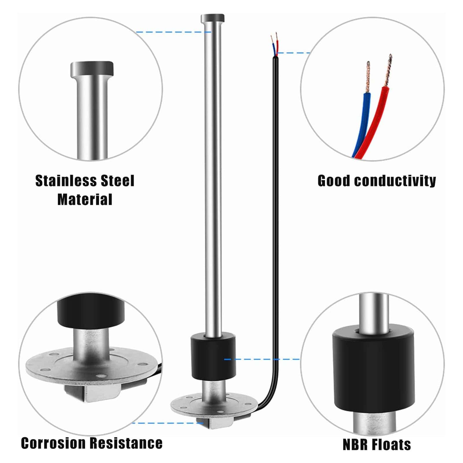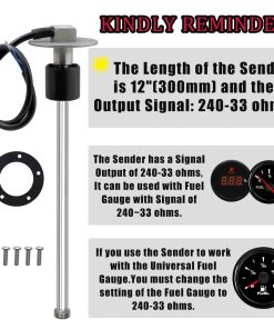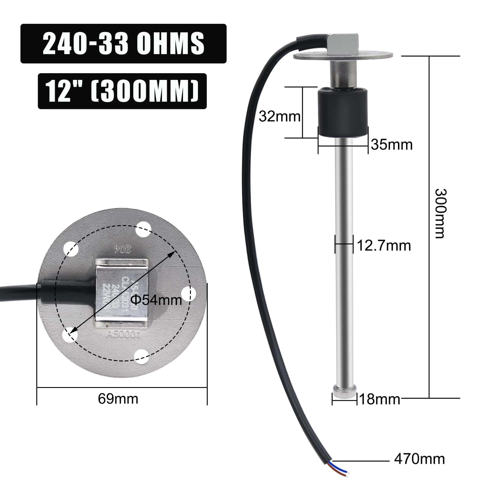 El Geloo 240-33ohm 12″ Unidad de Envío de Combustible Marino es un sensor de tanque de gasolina de alta calidad y precisión que se puede utilizar en una variedad de vehículos y embarcaciones. Hecho de resistente acero inoxidable SUS316, este sensor garantiza una medición precisa y una larga vida útil. Con una señal de salida de 240-33 ohmios, es compatible con medidores de nivel de combustible y medidores de nivel de agua de 240-33 ohmios. El rango de longitud ajustable de 150MM a 500MM permite una fácil instalación en tanques de diferentes tamaños. Con juntas y tornillos de montaje incluidos, las instrucciones de cableado son simples y fáciles de seguir. El sensor de nivel de agua del medidor es del tipo estándar de 5 orificios SAE y tiene una temperatura de operación de -40°C a +85°C. Mantente seguro y controla de manera precisa el nivel de combustible y agua en tu vehículo o embarcación con la unidad de envío de combustible Geloo.